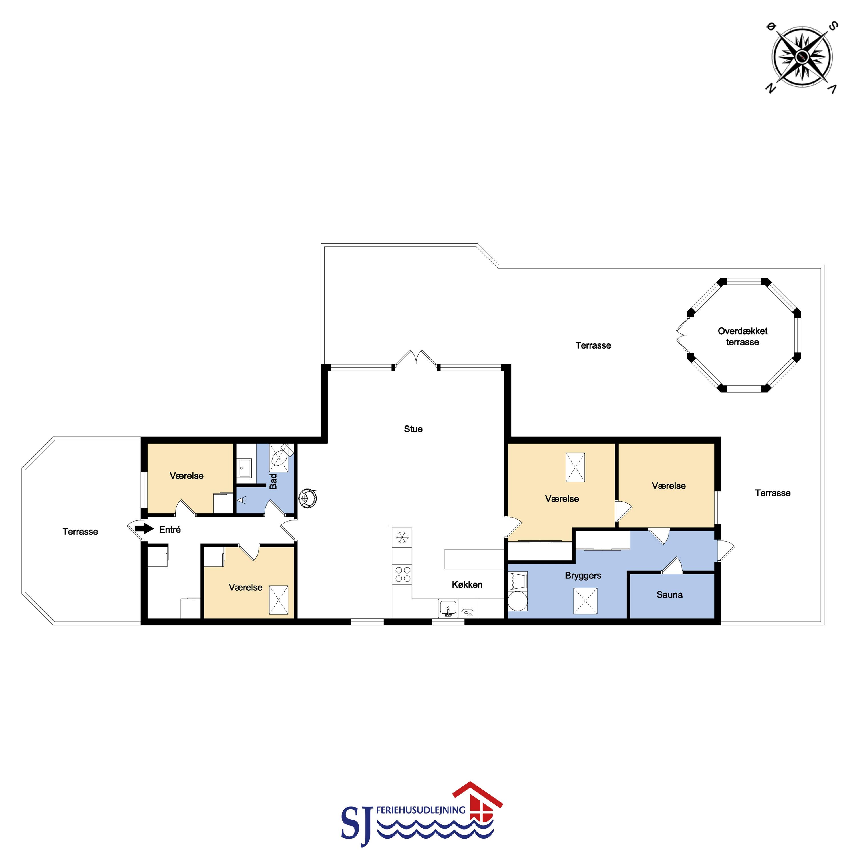 Dieses attraktiv gelegene Ferienhaus verfügt über 4 Schlafzimmer (1DB + 1DB + 1DB + 1DB). Zwei der Schlafzimmer sind direkt miteinander verbunden, haben einen gemeinsamen Eingang, sind jedoch durch eine Tür voneinander getrennt. In allen Schlafzimmern befindet sich ein zusätzliches TV-Gerät. Das Haus ist für maximal 6 Personen zugelassen.
