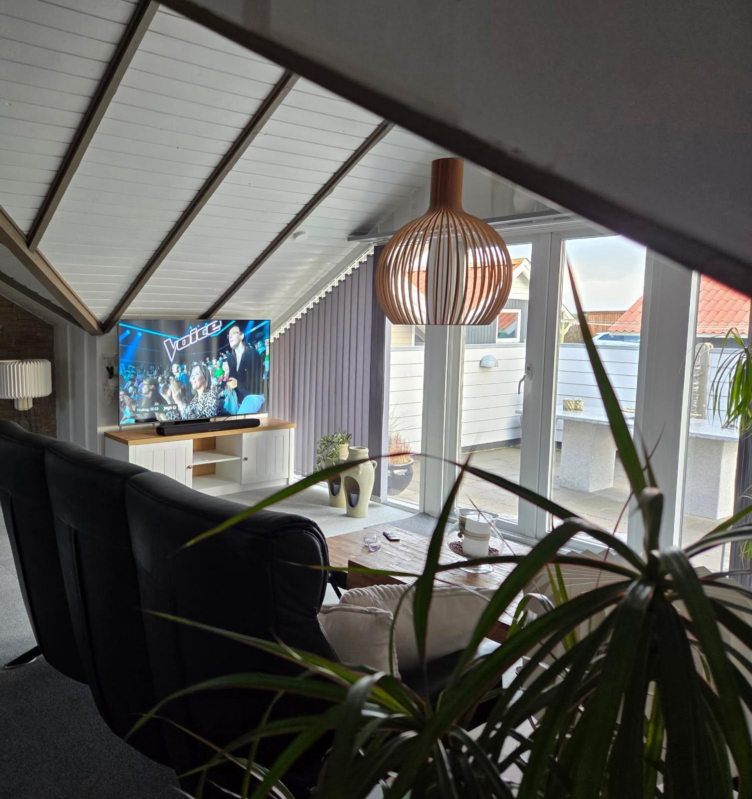 Gemütlich eingerichtetes Wohnzimmer mit hochwertigen Ledersofas, großem Fernseher mit dänischen und deutschen Programmen sowie der Möglichkeit, eigene Streaming-Dienste zu nutzen. Für schnelles Internet – auch zum Streamen – ist ein Glasfaseranschluss installiert. Eine Wärmepumpe sowie ein Pelletofen sorgen für angenehme Wärme und gleichzeitig für niedrige Energiekosten.