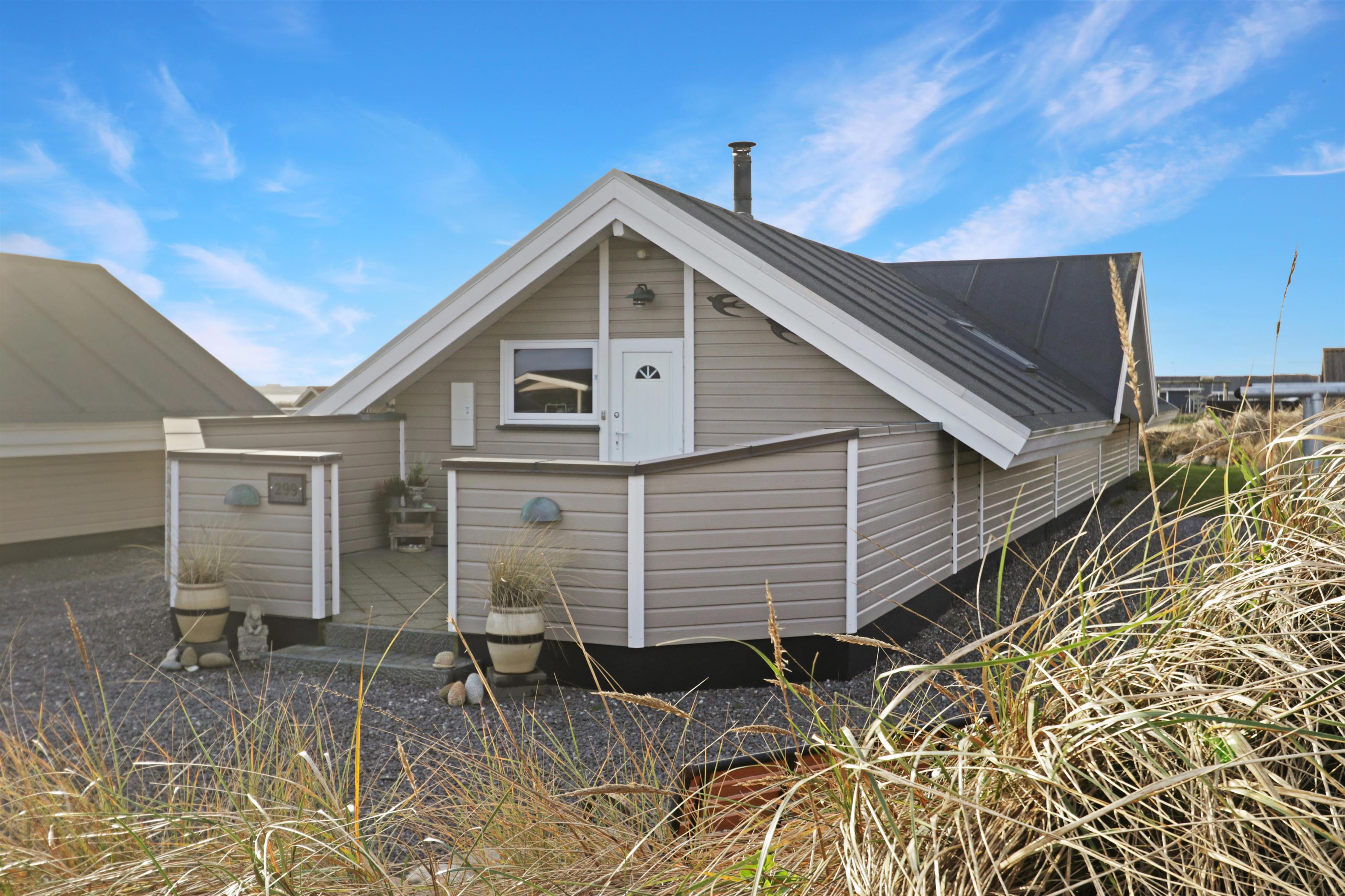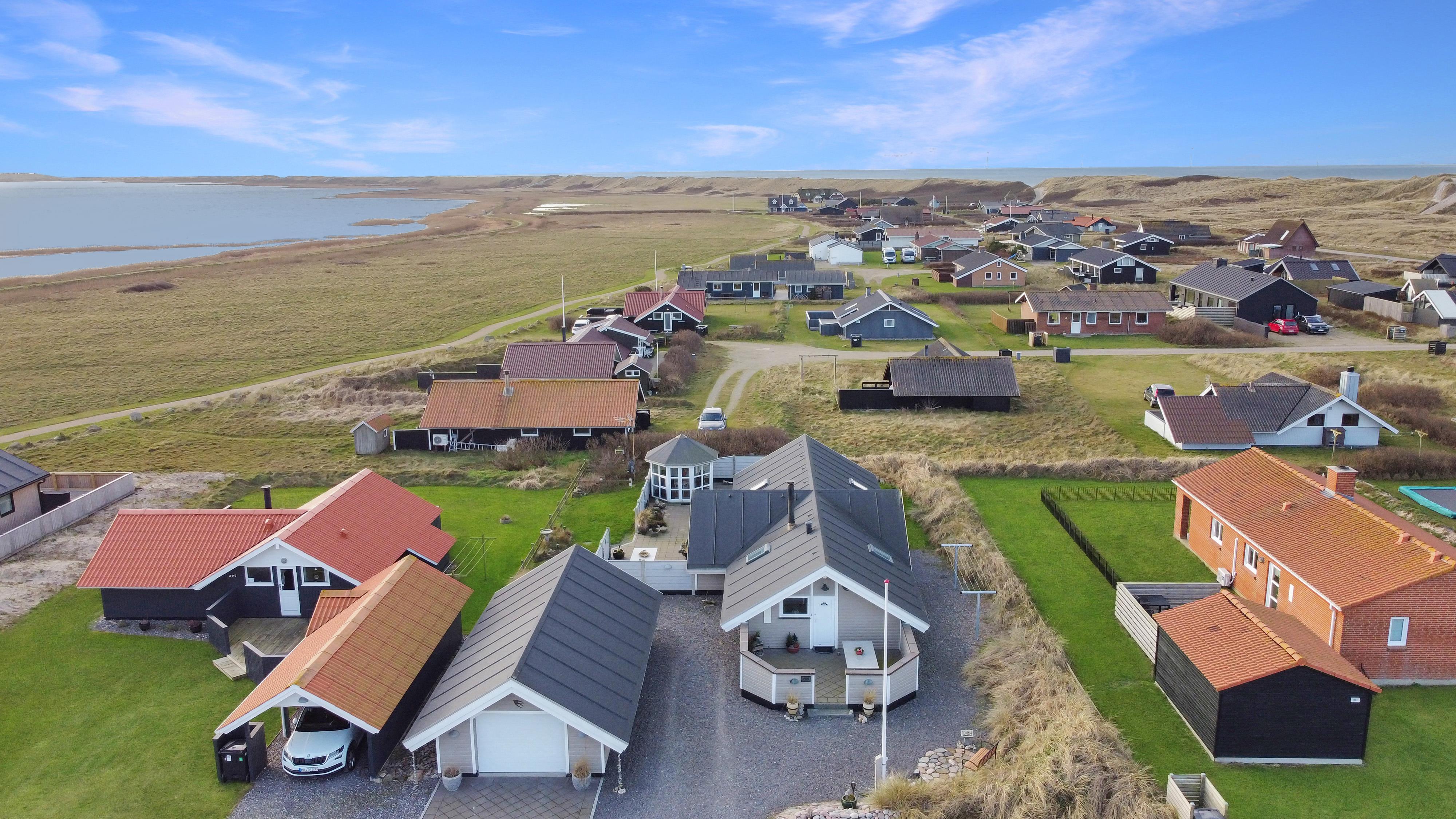 Vom Wohnzimmer aus hat man einen fantastischen Blick auf den Ferring See sowie auf die hohen Dünen der Nordsee. Nichtraucherhaus. 1 Haustier ist erlaubt.