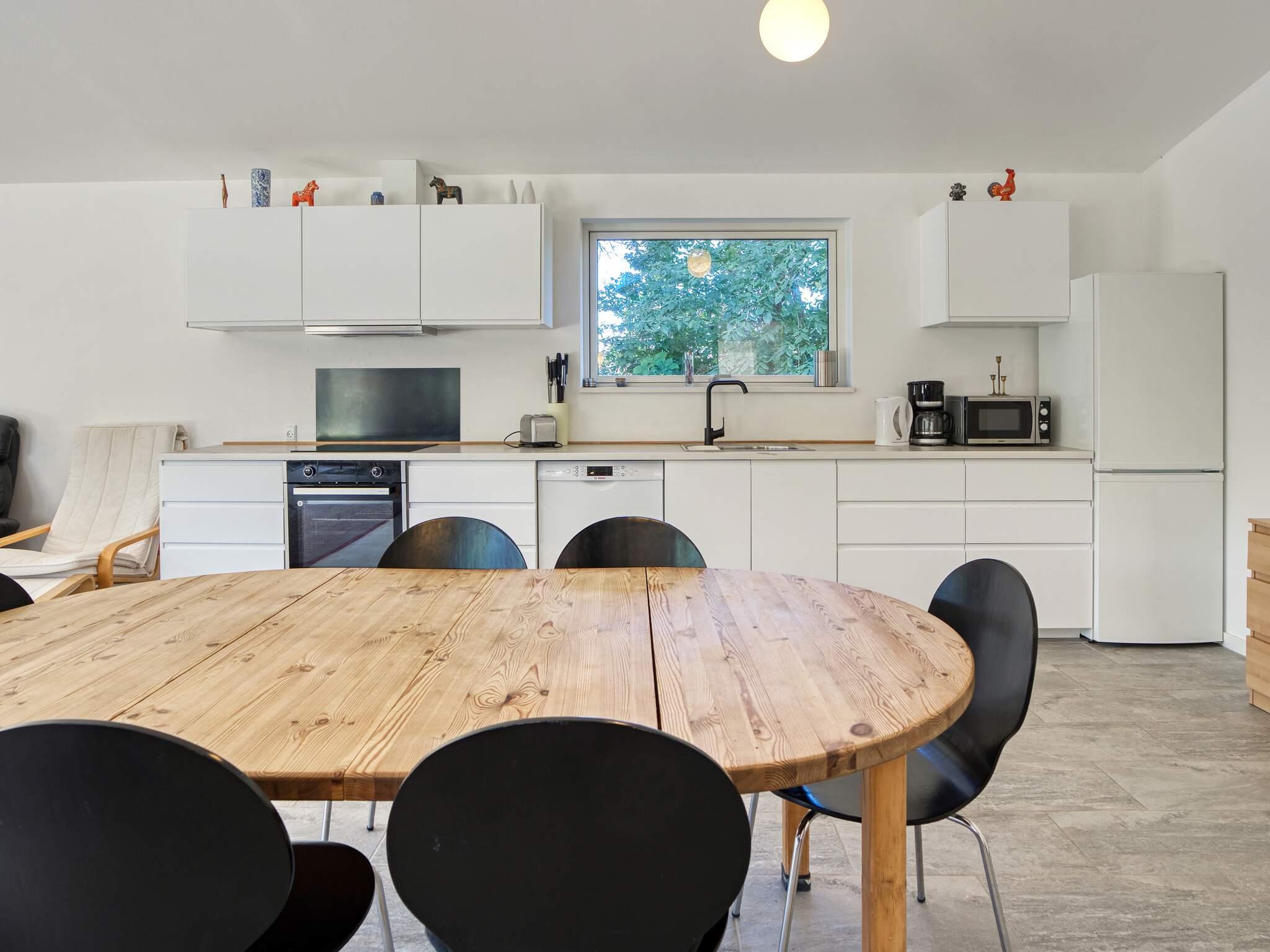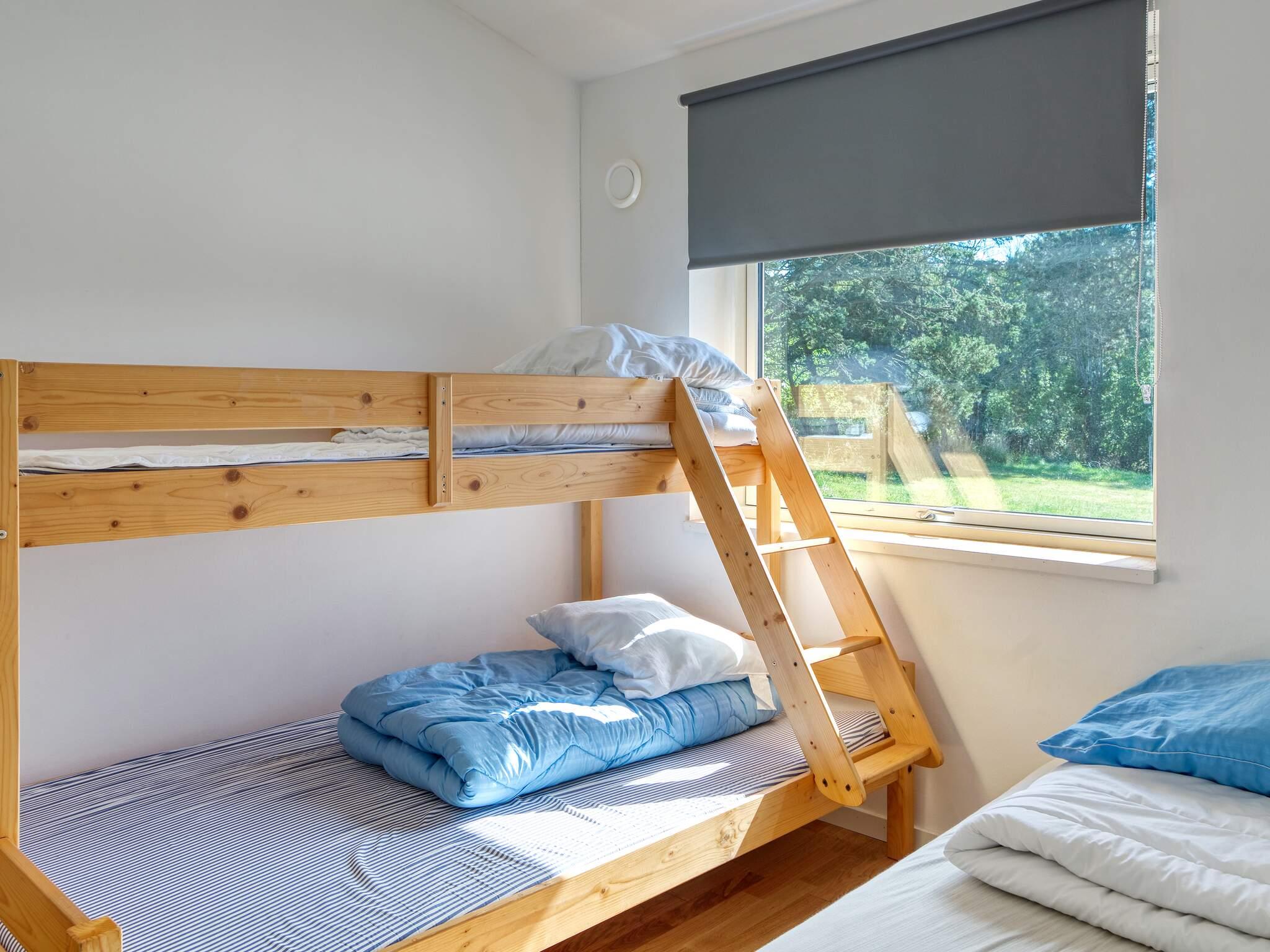 Das Herzstück des Hauses ist die große, offene Wohnküche mit hohen, bis zum Dachfirst reichenden Decken, die viel Tageslicht hereinlassen und ein luftiges, großzügiges Raumgefühl schaffen. Die gut ausgestattete Küche geht nahtlos in den Ess- und Sitzbereich über und ist somit ein idealer Treffpunkt für Mahlzeiten, Gespräche und gemütliche Abende. Das Haus verfügt über drei geräumige Schlafzimmer mit jeweils einem Doppelbett sowie ein viertes Schlafzimmer mit einem Etagenbett für zwei Personen und einem zusätzlichen Einzelbett. Außerdem gibt es einen Eingangsbereich, ein modernes Badezimmer und einen kombinierten Hauswirtschaftsraum mit einer zweiten Toilette.