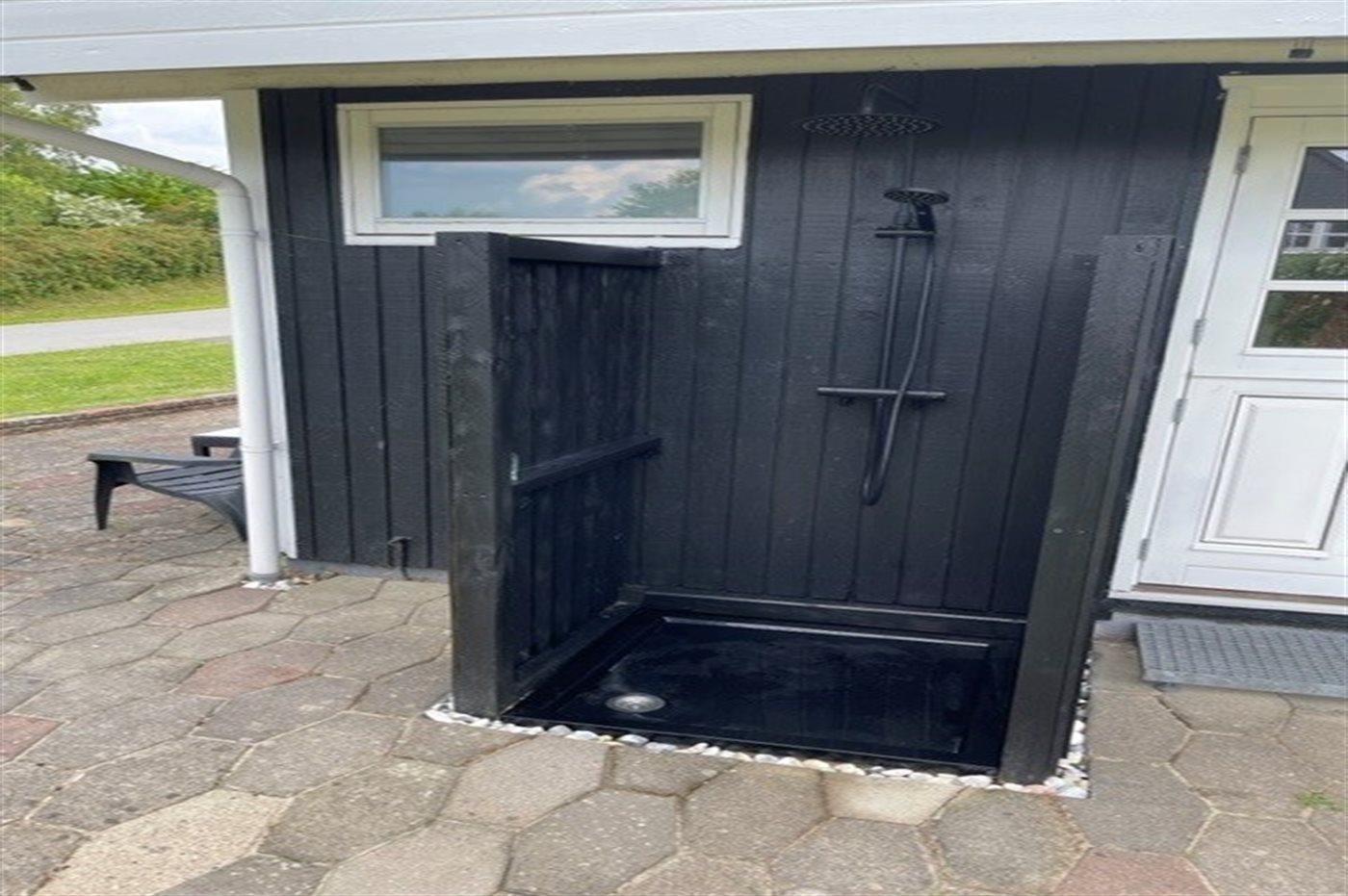 1 Badezimmer mit Duschnische und Toilette. Außendusche mit kaltem und warmem Wasser. Die Außendusche ist von Mai bis einschließlich August verfügbar.