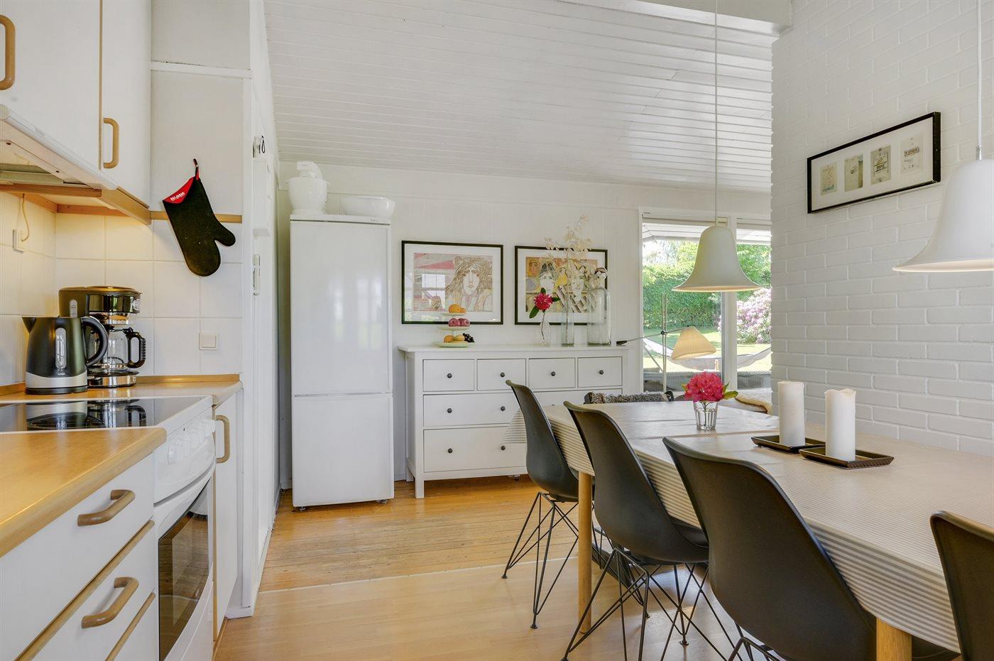 Schönes Ferienhaus mit gemütlicher Urlaubsatmosphäre. Das Holzhaus liegt am Ende einer Sackgasse in der schönen Natur einer Ferienhaussiedlung ganz in der Nähe des Isefjords. Hier kann man wandern, im Fjord baden, Ausflüge machen, angeln und vieles mehr – oder man kann sich einfach nur im Ferienhaus erholen!