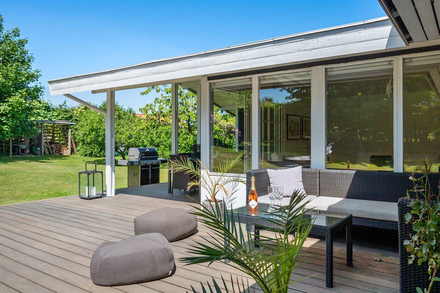 Die Ferienunterkunft liegt auf einem 1214 m2 großen Grundstück mit Sonne, Schatten und schönen windgeschützten Bereichen. Herrliche überdachte Terrasse (15 m2) mit Essplatz und 80 m2 große Holzterrasse mit Loungemöbeln. In der Einfahrt ist Platz für 2 Autos.