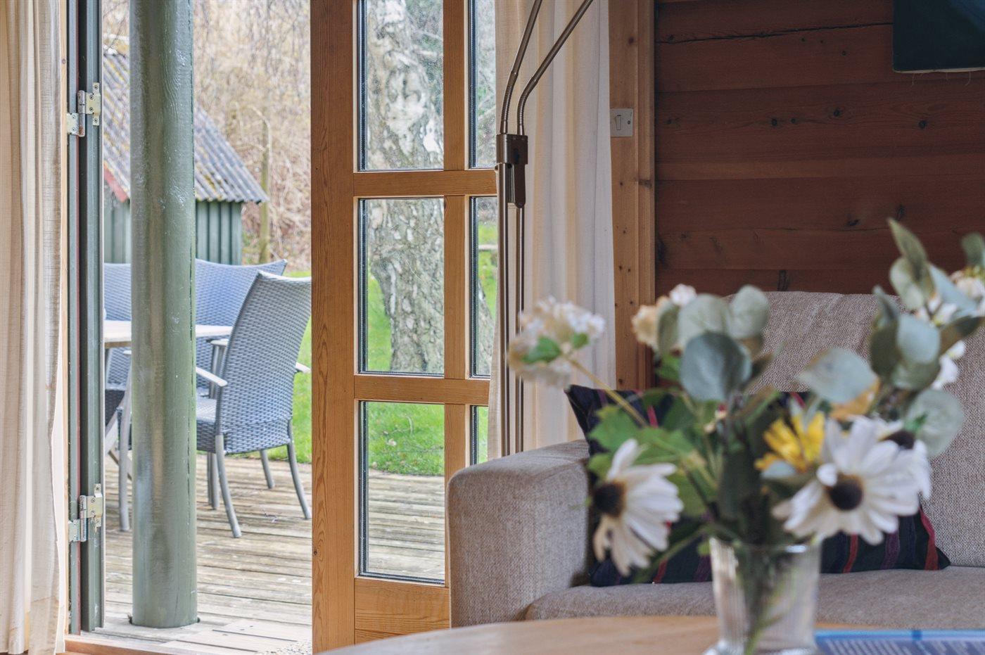 Gemütliches Ferienhaus nahe Fjord mit Kamin, Terrasse und Blick auf die Bucht in ruhiger Umgebung.