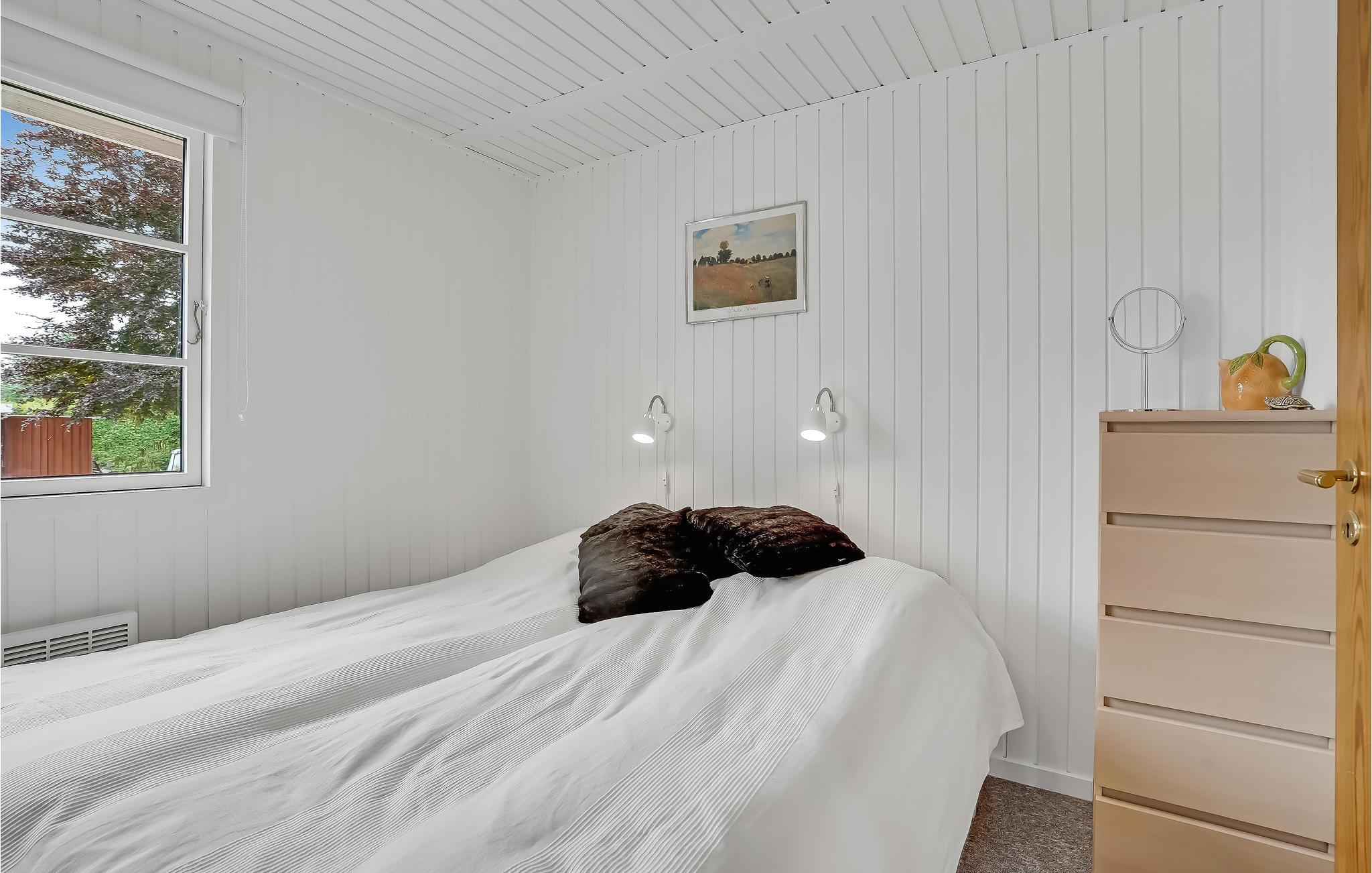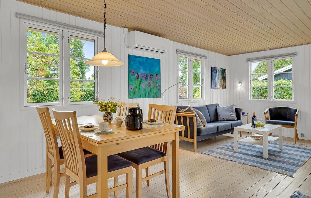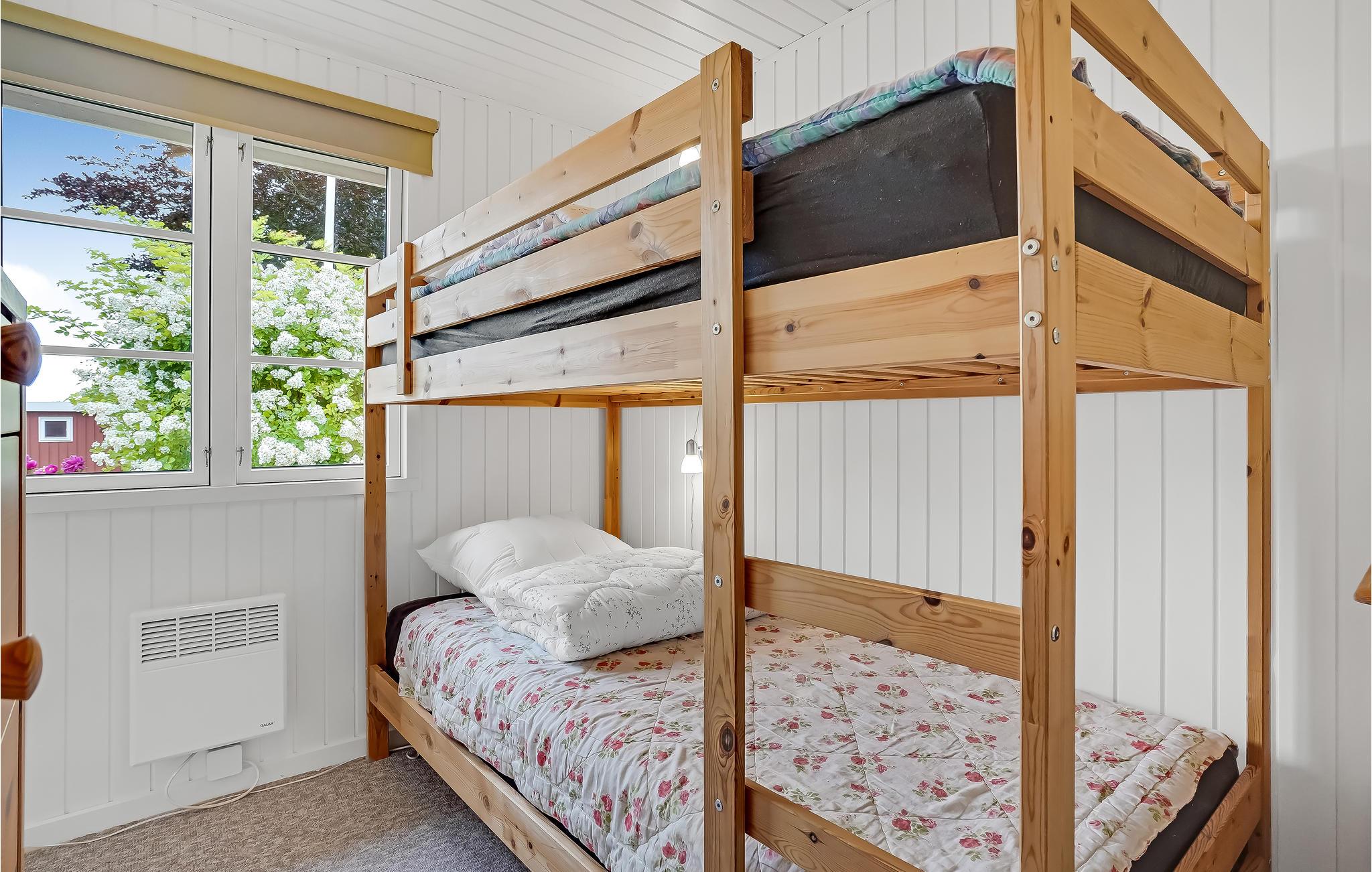 Die Einrichtung ist hell und wohnlich, das große Wohnzimmer mit offener Küche lädt dazu ein, hier viel gemeinsame Zeit zu verbringen. In dem einen Schlafzimmer befinden sich 2 Einzelbetten, das andere ist mit einem Etagenbett ausgestattet. Das Ferienhaus ist winterfest, hier können Sie es sich das ganze Jahr über mit Ihren Lieben gemütlich machen.