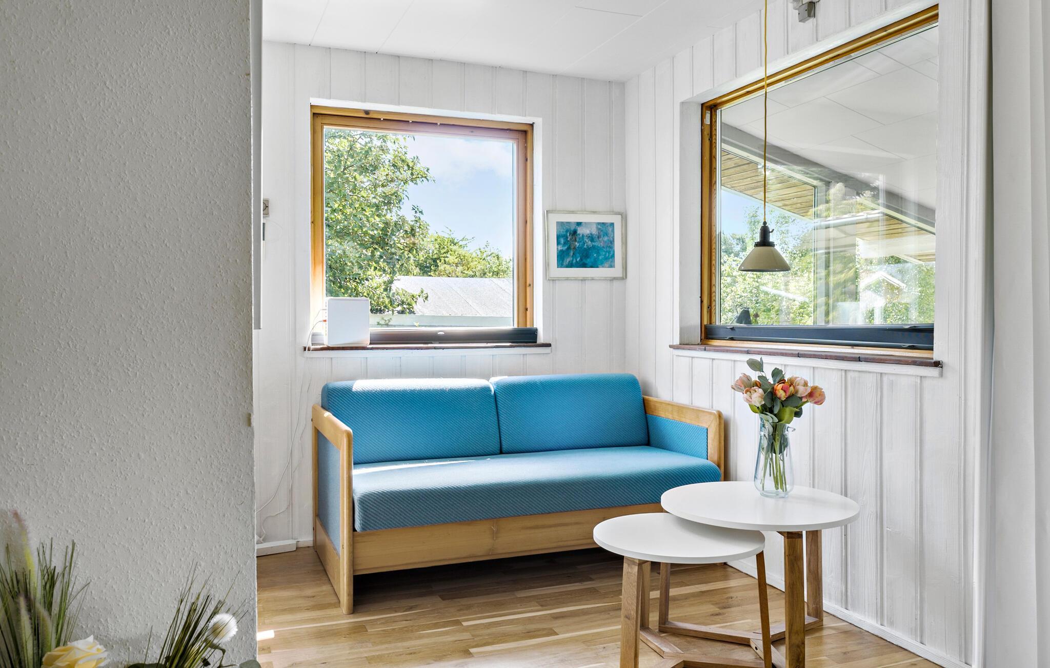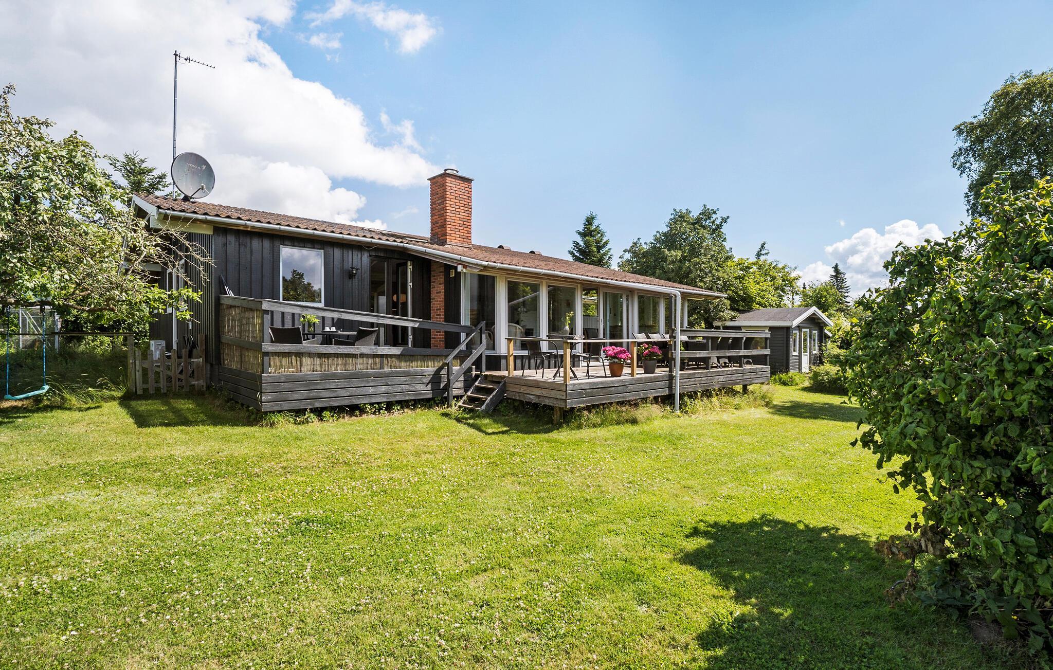 Dieses klassische dänische Ferienhaus, das nur wenige Gehminuten von der Bucht Inderbredning entfernt liegt, lädt Sie zu einem unvergesslichen Aufenthalt ein. Dieses großzügige Haus bietet ausreichend Platz, um flexibel mit Familie oder Freunden in unterschiedlichen Reisegruppen zusammenzukommen. Beginnen Sie Ihren Tag mit einem gemütlichen Frühstück am langen Esstisch und begeben Sie sich anschließend auf die Terrasse, wo Sie Ihren Morgenkaffee umgeben von frischer Luft und schöner Natur genießen können. Machen Sie es sich auch auf einer der bequemen Sitzgelegenheiten im Innenbereich bequem und genießen Sie Ihre freie Zeit. Verbringen Sie gemeinsame Stunden mit Brettspielen oder vertiefen Sie sich in ein spannendes Buch.