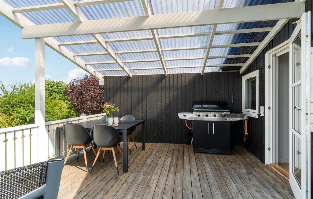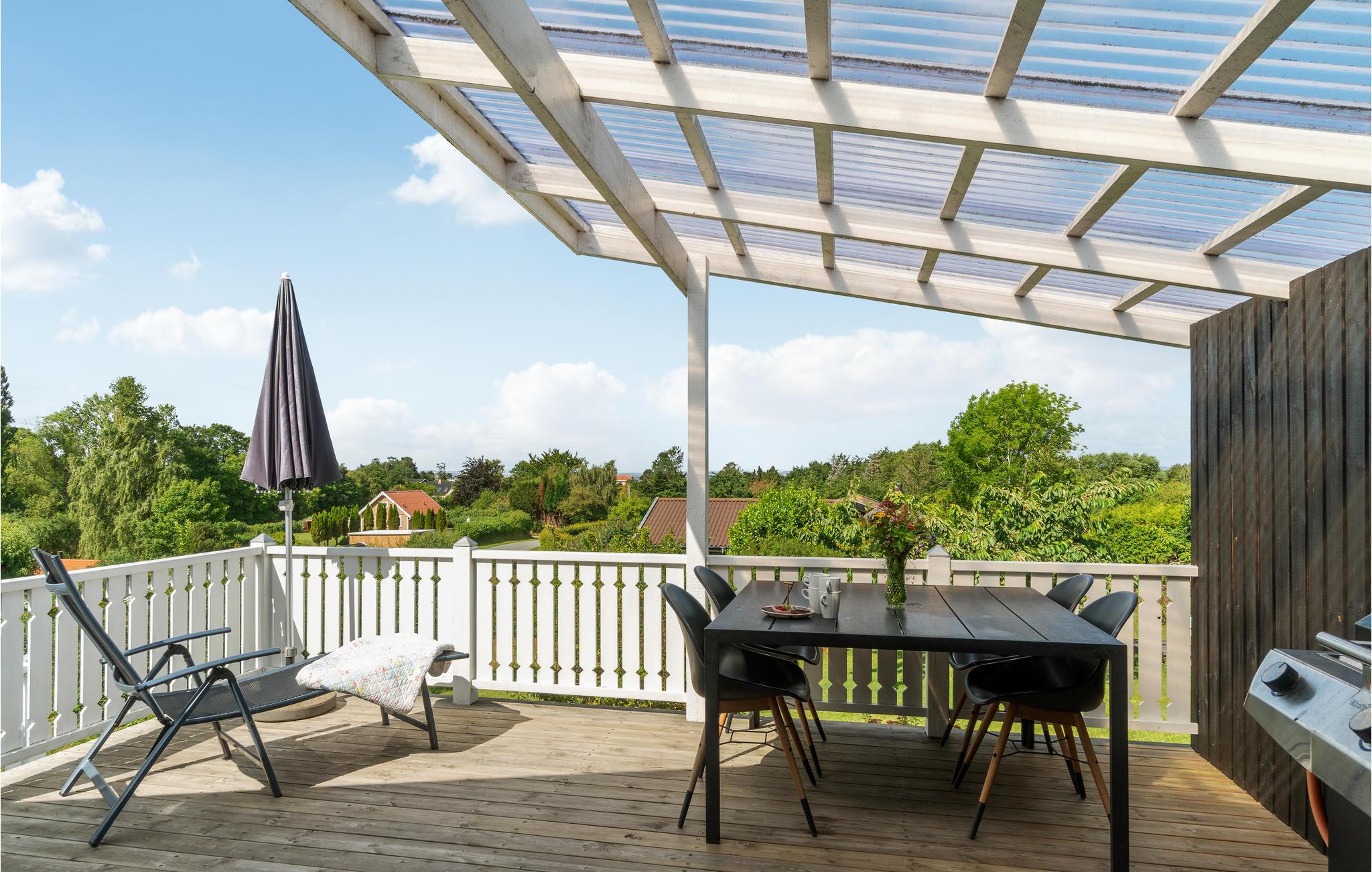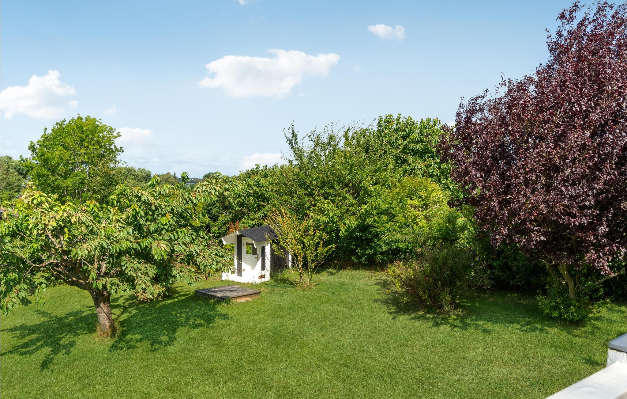 Im Freien finden Sie mehrere Holzterrassen, von denen eine eine Rutsche direkt in den Garten hat - ein sicherer Hit für alle Kinder. Auf der Terrasse stehen Gartenmöbel, Grill und Sonnenschirm zur Verfügung. Hier befindet sich auch ein überdachter Bereich, sodass Sie das Grillabendessen unabhängig vom Wetter im Freien genießen können. Der Garten bietet viel Platz zum Spielen und die Jüngsten können viele Stunden herumtoben und im Sandkasten spielen.