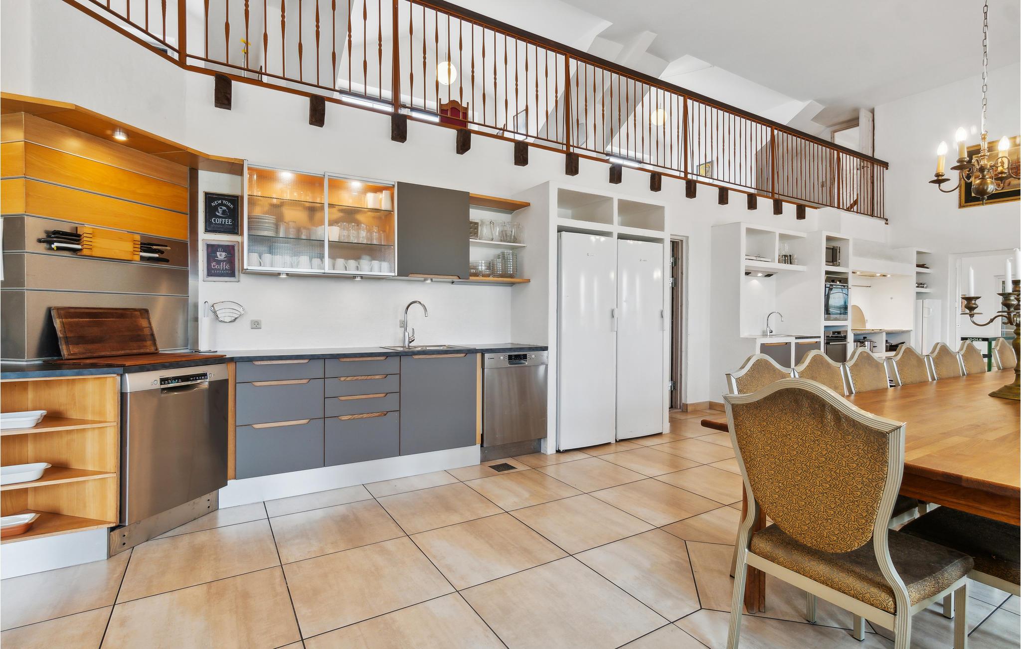 Die Wohnküche lädt durch ihre behagliche Atmosphäre zum Verweilen und gemeinsamen Essen ein. Die Küche ist funktionell eingerichtet, es gibt u. a. 8 Kochbereiche, 2 Backofen, 2 Kühlschränke und 2 Geschirrspülmaschinen.