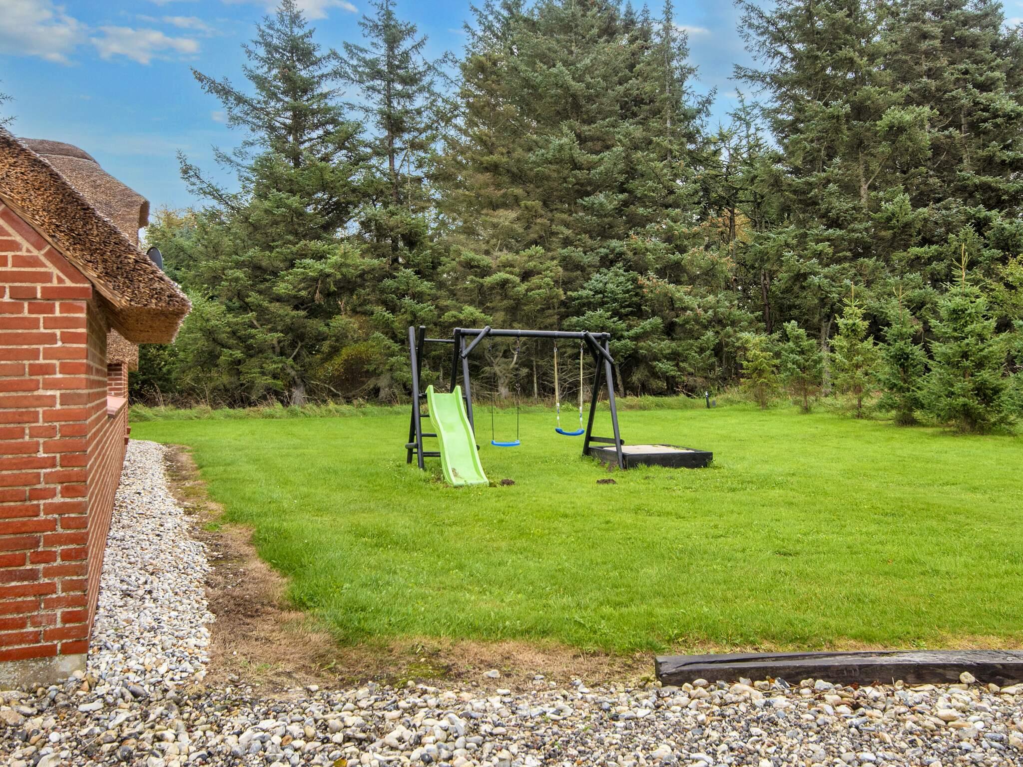 Das 215 m² große Ferienhaus liegt auf einem 5.000 m² großen Naturgrundstück, auf dem den Kindern Schaukeln, Fußballtore und ein Sandkasten zur Verfügung stehen. Auf der geschlossenen Terrasse gibt es sowohl einen Grill als auch Gartenmöbel für einen schönen Sommerabend. Außerdem können Sie es sich an der schönen Feuerstelle gemütlich machen.