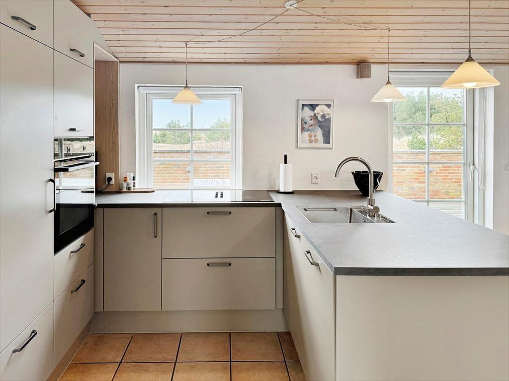 Schon beim ersten Betreten deines Ferienhauses spürst du, dass dieses Urlaubsdomizil viel Raum für Ruhe, Nähe und gemeinsame Erlebnisse bietet. Herzstück des Hauses ist der helle und einladende Küchen-, Wohn- und Essbereich, in dem du mit deinen Lieben Mahlzeiten zubereiten und anschließend genießen, vergnügte Spieleabende abhalten und natürlich auch in aller Ruhe lesen und die Seele baumeln lassen kannst. Selbstverständlich kann sich in diesem schön gestalteten Raum auch jeder den Dingen widmen, die er liebt. Während du beispielsweise für deine Familie das Lieblingsgericht kochst, können deine Kinder malen und basteln, während sich deine besser Hälfte eine entspannte Auszeit auf dem Sofa gönnt. Abends macht ihr es auch zusammen vor dem behaglich wärmenden, knisternden Kaminofen gemütlich, der den gesamten Raum mit einer wunderbaren Stimmung und Ruhe erfüllt. In diesem Ferienhaus erwartet dich Platz und Zeit für das Wesentliche - für die Menschen, die dir besonders viel bedeuten.