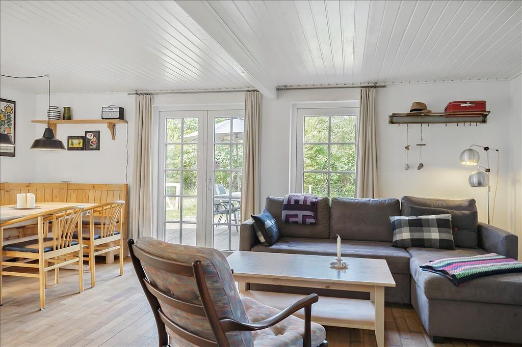 Das Ferienhaus liegt mitten in der westjütländischen Natur, wo der ewige Rhythmus der Nordsee einen beschaulichen Hintergrund bildet. Ihr werdet oftmals das Brausen der Nordsee hören können - selbst aus der Entfernung - eine konstante Erinnerung daran, dass ihr etwas Großem und Lebendigem ganz nah seid. Der Strand ist nicht weit entfernt, und ihr könnt Stunden in der Sonne verbringen, den Sand zwischen den Zehen spüren und den Wind im Haar. Die Sonne steht hoch - also denkt an eure Sonnencreme - und die Tage fühlen sich leicht und lebendig an. Wenn ihr Schatten oder Ruhe braucht, könnte eine Wanderung durch die Husby Klitplantage die perfekte Unterbrechung sein. Hier duftet der Wald nach Nadelbäumen und Erde und ihr könnt entweder still wandern oder die vielen Radwege nehmen, die sich durch die Landschaft schlängeln. Wenn ihr zu transpirieren beginnt, lockt der herrlich erfrischende Badesee in der Plantage - ein natürliches, erfrischendes Bad mitten im Wald. Und für eure Hunde gibt es auch reichlich Gelegenheit für Spiel und freies Herumtollen im nahegelegenen Hundewald, wo sie dem Duft neuer Abenteuer folgen können, während ihr Gespräche in der ruhigen Natur genießt. Hier gibt es zuhauf Erlebnisse für Körper und Seele für Zwei- als auch Vierbeiner.