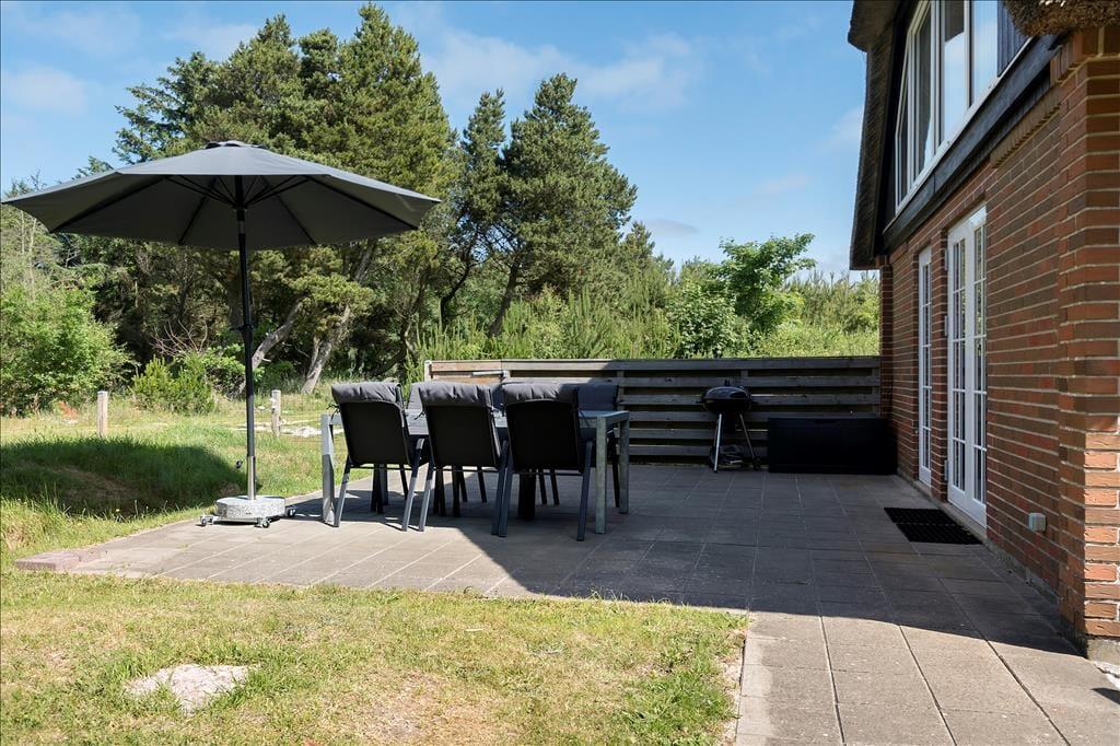 Ist das Wetter schön, lädt euch der schöne Außenbereich zum Entspannen ein. Der größte Teil des Grundstücks eingezäunt, sodass eure Vierbeiner frei und sicher herumlaufen, ungehindert alles beschnuppern und die Freiheit genießen können, während ihr selbst euch in den komfortablen Gartenmöbeln niederlasst. Vielleicht mit einem guten Buch und einem Glas Sekt in der Hand - oder einfach in Stille, mit der frischen Luft und den Geräuschen der Natur um euch herum. Die Atmosphäre auf dem Grundstück ist etwas ganz Besonderes - fast schon meditativ und lädt zu langen, ruhigen Gesprächen ein, die Raum für sowohl tiefe als auch heitere Gedanken bieten. Und wenn am Abend die untergehende Sonne die Landschaft in goldene Farben taucht, sitzt ihr beisammen und erlebt ein Farbspiel wie man es nur in Westjütland erleben kann. In diesem Ferienhaus fühlt man sich leicht Zuhause.