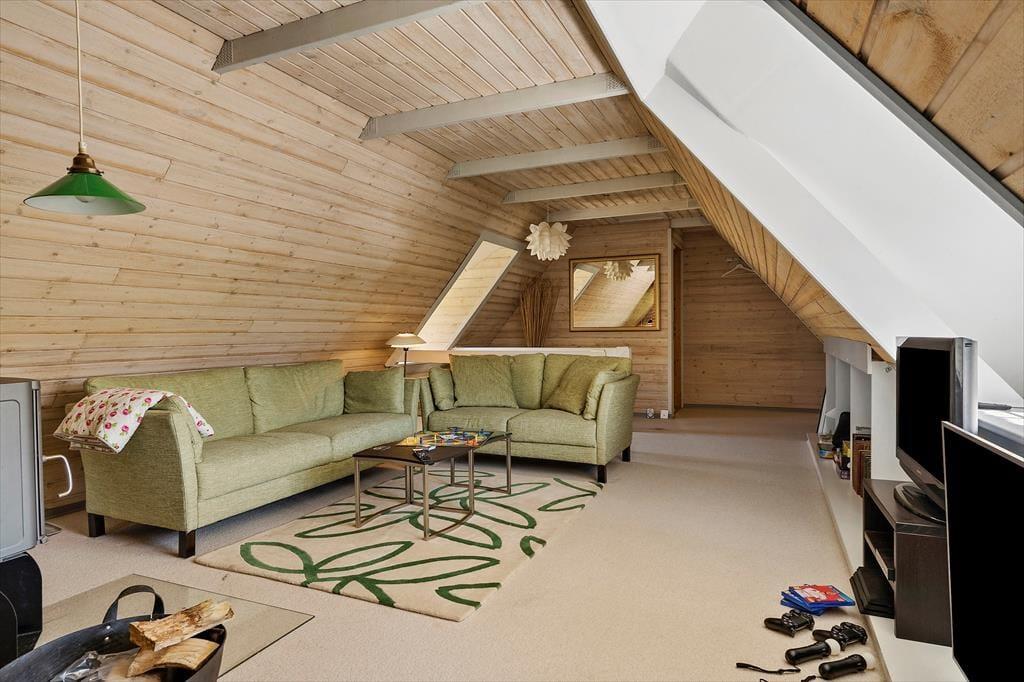 Tritt hinaus in den schönen Garten, der Groß und Klein gefällt. Während sich die Kinder auf der Schaukel vergnügen, kannst du in den Gartenmöbeln sitzen, eine Tasse Kaffee genießen, die Sonne im Gesicht spüren und die Ruhe auf dich wirken lassen. Die große Rasenfläche lädt zu Spaß mit der Familie und den Hunden ein, oder zu einem kleinen Fußballspiel. Mehrere schöne Terrassen rund um das Haus bieten euch die Möglichkeit, den ganzen Tag über Sonne oder Schatten zu finden – je nach Lust und Laune. Ob du den Morgen allein mit Vogelgezwitscher und frisch gebrühtem Kaffee genießen oder den Abend mit einem gemütlichen Essen vom Grill und Gelächter ausklingen lassen möchtest, während die Sonne den Himmel in warme Orangetöne taucht – hier entstehen die kleinen Momente, die man am längsten in Erinnerung behält. Es ist ein Ort zum Zusammensein und Abschalten.
