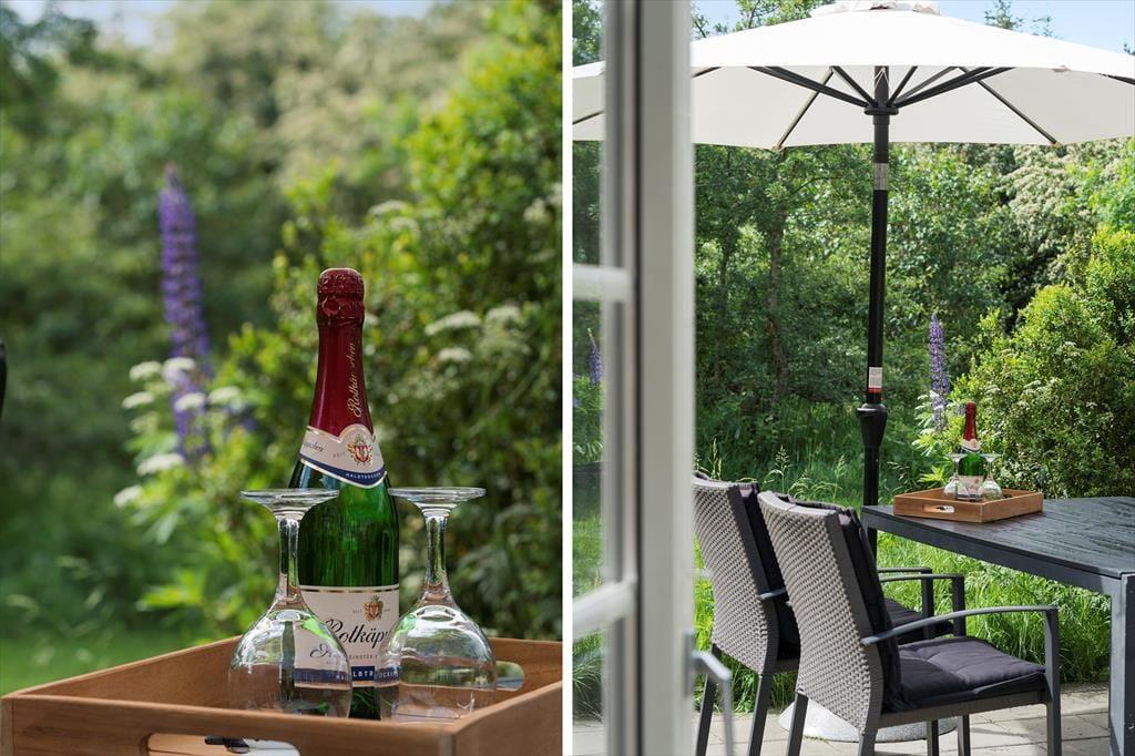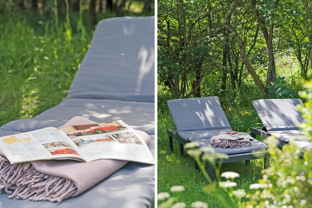 Das Ferienhaus steht auf einem ungestörten Naturgrundstück, umgeben von Büschen und Bäumen. Hier könnt ihr, im besten Sinne ganz für euch sein: Keine Autos, kein Lärm – nur Vogelgesang und das sanfte Rascheln der Gräser. Draußen erwartet dich die Terrasse als kleines Refugium mitten in der friedlichen Natur. Ein schöner Ort, um Ruhe und Zusammensein zu genießen. Wenn die Sonne untergeht und das Licht golden wird, kannst du den Tag hier sanft ausklingen lassen. Vielleicht startet ihr den Morgen ebenfalls hier draußen – mit einer Tasse Kaffee, einer warmen Decke über den Schultern und dem Tau, der langsam verschwindet, während die Sonne aufgeht. Die frische Luft und die Nähe zur Natur lassen dich spüren, wie gut eine Auszeit tut. Hier hast du Raum, um ganz im Moment zu sein.