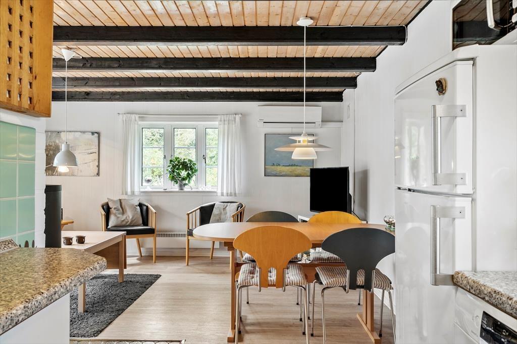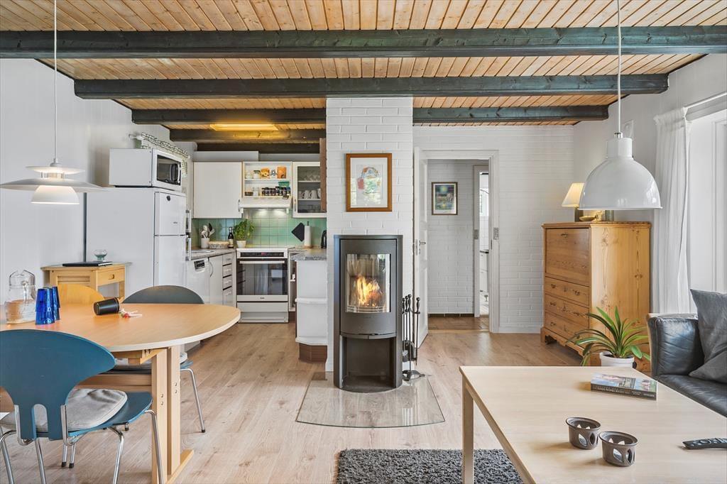 Willkommen in deinem Ferienhaus – einem hellen und einladenden Ort. Der große Wohnbereich, der Wohnzimmer, Essbereich und Küche vereint, macht es euch leicht, zusammen zu sein. Egal ob ihr kocht, spielt oder entspannt: Hier findest du Raum für alles. Mach es dir mit einem guten Buch auf dem Sofa gemütlich oder versammle dich mit deinen Lieben am Esstisch zu einem leckeren Essen mit frischen, lokalen Zutaten. Ihr könnt ausgiebig die gemeinsame Zeit genießen, während der Kaminofen leise knistert und die perfekte Ferienatmosphäre zaubert.