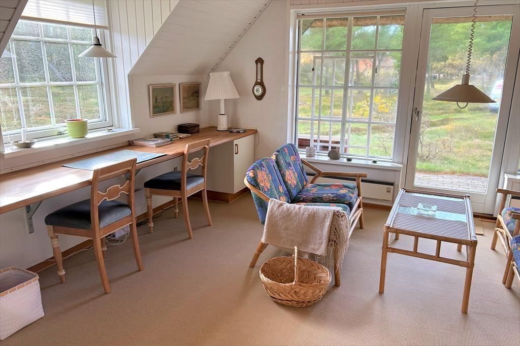 Wenn ihr das Haus betretet, dann spürt ihr schnell eine stille Ruhe, die sich langsam über euch senkt - als wären es die ersten Sonnenstrahlen des Tages, die sanft das Gesicht treffen. Hier ist Raum zum Ankommen - einmal loszulassen und bis in den Bauch hinein zu atmen. Das Haus liegt geschützt zwischen der sanften Dunkelheit des Waldes und der hellen Landschaft der Dünen - und es fühlt sich fast so an, als hieße euch hier die Natur selbst willkommen. Im Wohnzimmer habt ihr den langen Schreibtisch, an dem ihr alle zusammen sitzen könnt - vielleicht mit einem guten Buch, einem kreativen Projekt oder bloß einer Tasse Kaffee, während die anderen am Sofatisch Karten spielen oder Pläne für die Abenteuer der nächsten Tage schmieden. Das Ganze findet in stillem Zusammenspiel statt, wo gleichzeitig zusammen oder jeder einzeln für sich sein könnt. Wenn ihr euch erhebt und den Blick durch die Fenster hinausgleiten lasst, dann findet ihr eine Landschaft vor, die ihr Aussehen den ganzen Tag über verändert: Dünen, die sich im Winde ducken, der Wald, der wie ein großer Freund am Horizont steht - und eine Stimmung, die dich zu einem kurzen Spaziergang geradezu einlädt, um das frische Brausen des Meeres in der Ferne wahrzunehmen.