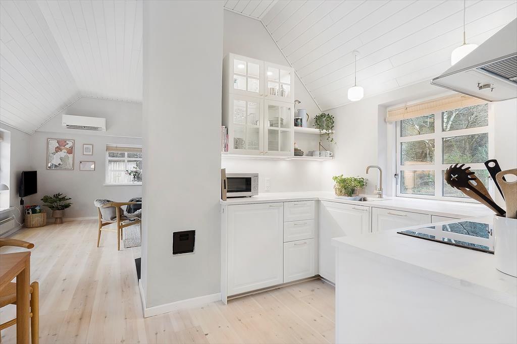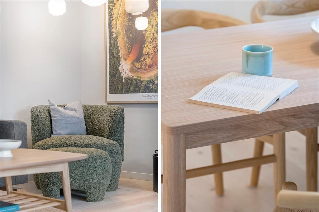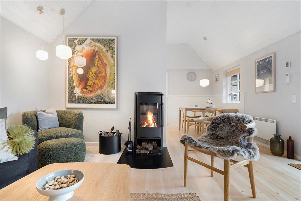 Tretet ein in ein Ferienhaus, das euch vom ersten Moment an mit einer warmen und einladenden Atmosphäre empfängt. Alles ist darauf ausgerichtet, euch Gemütlichkeit und gemeinsame Zeit zu bereiten. Die helle Küche lädt dazu ein, eure kulinarischen Ideen gemeinsam umzusetzen, während Gespräche entstehen und die Ruhe sich langsam ausbreitet. Im Wohnzimmer wartet der Kaminofen als Herzstück des Hauses: Wenn ihr euch in die Sofas sinken lasst, breiten sich das Knistern des Feuers und seine sanfte Wärme wohltuend im Raum aus und schaffen eine ganz besondere Stimmung. Große Fenster lassen das Licht je nach Tageszeit auf unterschiedliche Weise herein – vom klaren Morgenlicht bis zu den warmen, gedämpften Tönen der Abendsonne. Ein Ort voller Persönlichkeit und Charme, an dem man ganz von selbst zur Ruhe kommt.