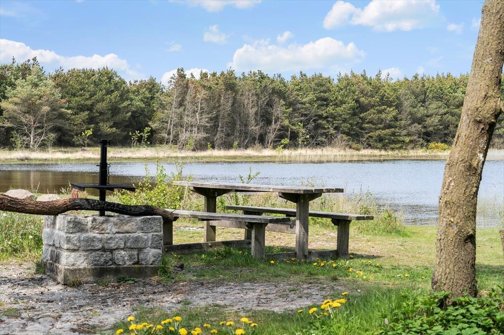 Rund um das Ferienhaus erwarten euch Ruhe, Natur und kleine Erlebnisperlen. Eine kurze Fahrt bringt euch zum nahegelegenen Badesee, wo ihr den Tag mit einem erfrischenden Sprung ins Wasser beginnen oder einfach die Stille am Ufer genießen könnt. Ihr könnt euch auch in den nahen Dünenwald begeben, wo der Duft von Nadelbäumen und weicher Waldboden eine besondere Ruhe schenken, oder die Waldspielplätze besuchen, auf denen Kinder wie Erwachsene aktiv werden können. Ob offene Meereslandschaft, stille Waldpfade oder spiegelglatte Seen – die Natur lädt überall zum Durchatmen ein. Wenn ihr Lust auf mehr Atmosphäre und Leben bekommt, erreicht ihr in kurzer Zeit gemütliche kleine Städte, gute Restaurants, interessante Geschäfte und Erlebnisse für jedes Alter. So lässt sich die Ruhe des Ferienhauses perfekt mit lokalen Eindrücken, Kultur und einem ganzen Tag voller schöner Momente verbinden.
