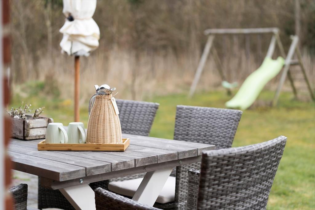 Draußen setzt sich das Gefühl von Freiheit und Gemeinsamkeit fort. Das ungestört gelegene Naturgrundstück schafft einen sicheren und offenen Raum, in dem Groß und Klein spielen, toben und kreativ werden können. Es gibt Platz für Ballspiele, zum Verstecken und für spontane Ideen. Auch euer vierbeiniges Familienmitglied wird die Düfte und das abwechslungsreiche Gelände lieben. Der Vogelgesang begleitet euch wie eine sanfte Melodie. Die Terrassen bieten gute Möglichkeiten für Sonnenbäder, Ruhe und gemütliche Momente im Freien. Gemeinsame Mahlzeiten auf der Terrasse sind immer etwas Besonderes, besonders dann, wenn ihr von der ruhigen Rhythmik der Natur umgeben seid und die frische Meeresluft spürt. Am Abend genießt ihr die warmen Farbtöne am Himmel, lasst den Tag zur Ruhe kommen und seid einfach da – gemeinsam.