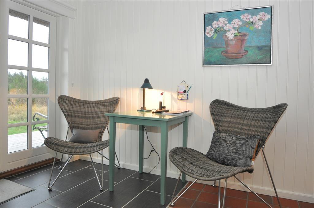 Draußen erwartet dich ein schönes, ungestörtes Naturgrundstück, das Platz für Spiel, Bewegung und Entspannung an der frischen Seeluft bietet. Deine Kinder werden ausgelassen umhertollen, und auch euer vierbeiniges Familienmitglied hat genügend Raum zum Schnüffeln und Erkunden. Die beiden Terrassen sind nach Südosten und Südwesten ausgerichtet, sodass du sowohl die Morgensonne mit einer Tasse Kaffee als auch das stimmungsvolle Abendlicht in einem Moment der Stille genießen kannst – während das Rauschen des Meeres im Hintergrund zu hören ist. Das Naturgrundstück gibt dir die Freiheit zu entscheiden, ob dein Tag aktiv, ruhig oder voller gemütlicher Momente mit der Familie verlaufen soll, bei denen jeder auf seine eigene Weise mitmachen kann. Vogelgezwitscher, das Meeresrauschen im Ohr und die offene Landschaft sorgen für eine besondere Ruhe. Du wirst vom ersten Moment an spüren, wie die Last des Alltags von dir abfällt, während ihr gemeinsam Zeit in Sonne, Wind und Wärme verbringt.