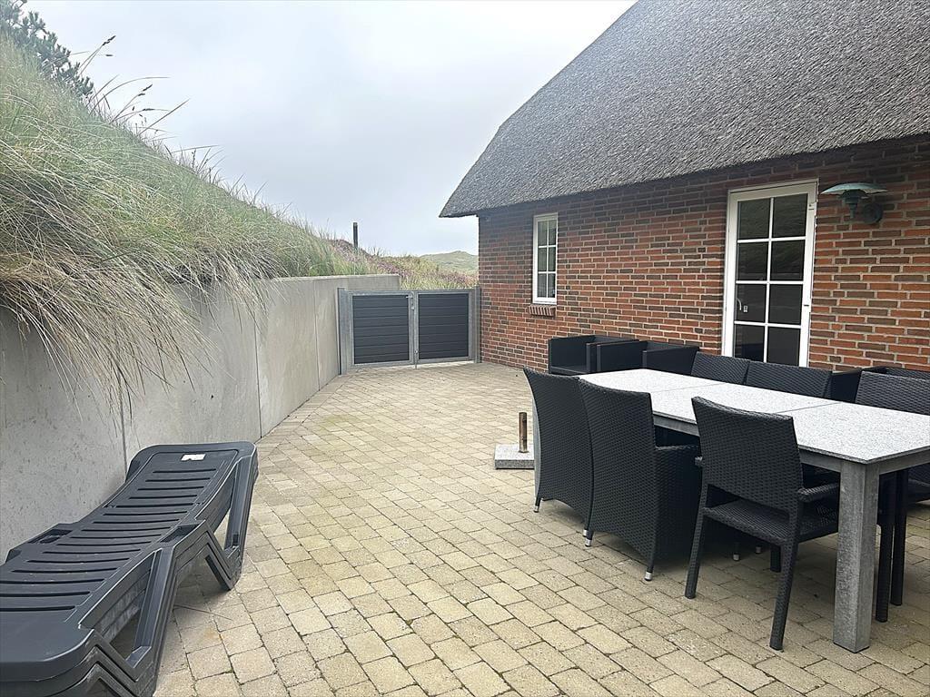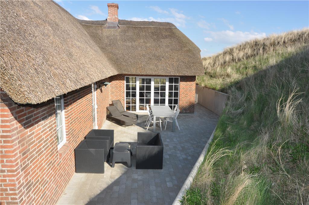 An das Urlaubsdomizil schmiegen sich zwei schöne Terrassen an, die beide durch die Dünen angenehm vor Wind geschützt sind. Gartenmöbel, Liegestühle und ein Grill stehen für Sie bereit. Das Haus befindet sich mitten in den Dünen. Das Grundstück ist daher sehr hügelig.