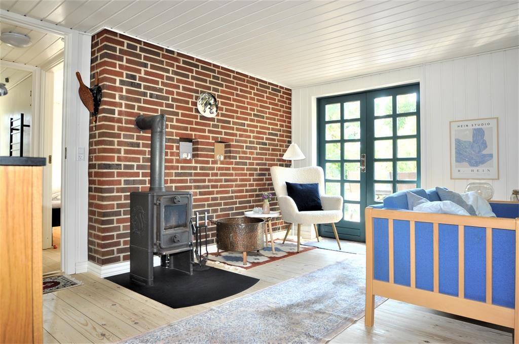 Das Urlaubsdomizil empfängt Sie im Erdgeschoss mit neu weiß gestrichenen Holzwänden und einer neuen Küche. Die Einrichtung ist gemütlich und überzeugt mit einer ansprechenden und komfortablen Möblierung. Im Wohnraum gibt es einen Kaminofen, einen Fernseher und eine Sofagruppe. In offener Verbindung zum Wohnraum erwartet Sie der Essbereich. In der renovierten, gut ausgestatteten Küche erleichtern Ihnen ein Ceranfeldherd, ein Dunstabzug, eine Gefriermöglichkeit und ein Geschirrspüler Ihre alltäglichen Aufgaben. Die sechs vorhandenen Schlafplätze verteilen sich auf drei Schlafräume, von denen zwei im Obergeschoss untergebracht sind. Das attraktive und neurenovierte Badezimmer ist mit einer Dusche ausgestattet. Für ein behagliches Raumklima ist Dank einer energiesparenden Wärmepumpe bestens gesorgt.