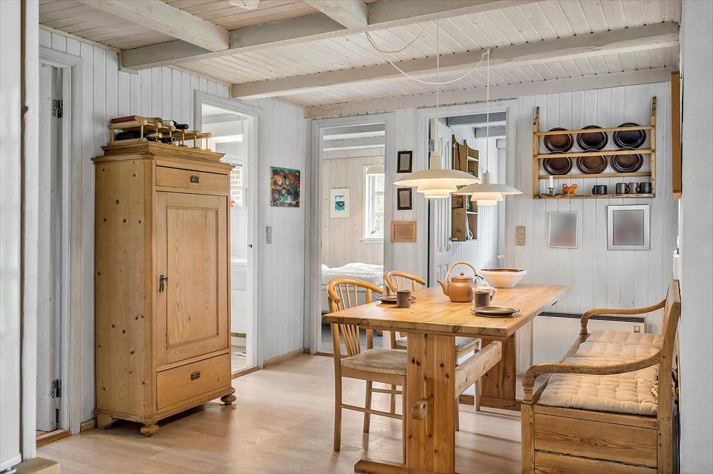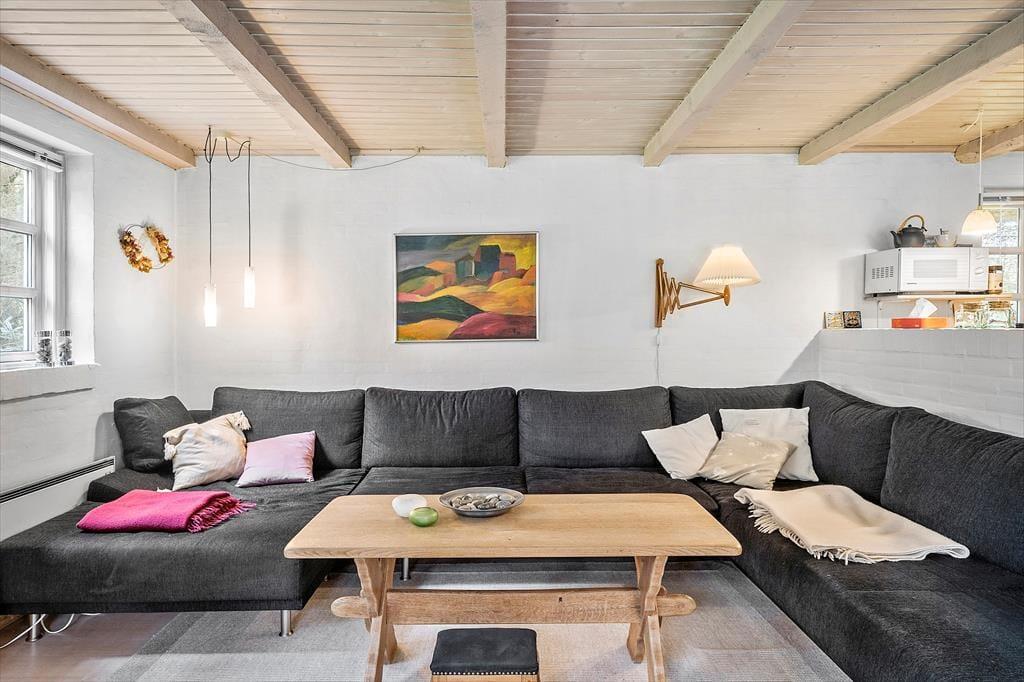 Zu gemütlichen Stunden im Kreise deiner Familie lädt der offen kombinierte Küchen-, Wohn- und Essbereich dieses Ferienhauses ein. Gemeinsam könnt ihr am Esstisch die Mahlzeiten und vergnügte Spieleabende genießen und euch nach einem Badetag am Meer oder nach dem Bewundern des Sonnenuntergangs in aller Ruhe vor dem Kaminofen entspannen. Dank der offenen Wohnlösung genießt du selbst während der Zubereitung köstlicher Mahlzeiten in der Küche, die Nähe deiner Lieben, die es sich im Wohn- und Essbereich gemütlich gemacht haben. Die Schlafräume bieten nicht nur gute Schlafgelegenheiten, sondern eignen sich außerdem für ruhige, zurückgezogene Stunden mit einem spannenden Buch.