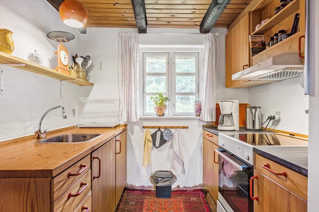 Gleich, wenn du dieses schöne Ferienhaus betrittst, wirst du von der gemütlichen Atmosphäre empfangen, in der du dich sofort wohlfühlen wirst. Nimm Platz im schönen Wohnzimmer mit den dunklen Deckenbalken, die dem Haus eine besondere Gemütlichkeit verleihen. In der kleinen Küche hast du die Möglichkeit, köstliche Mahlzeiten zu genießen. Im Wohnzimmer kannst du es dir bei fantastischer Aussicht mit einer heißen Tasse Kakao auf dem Sofa gemütlich machen, besonders wenn der Kaminofen angenehme Wärme ausstrahlt sowie sein gemütliches Knistern verbreitet.