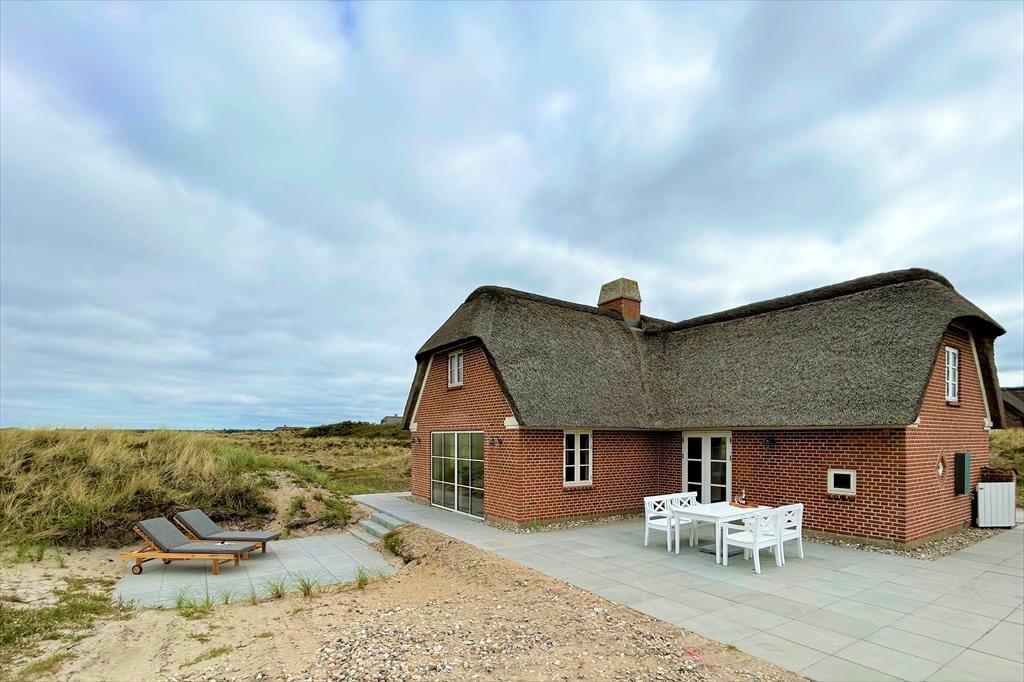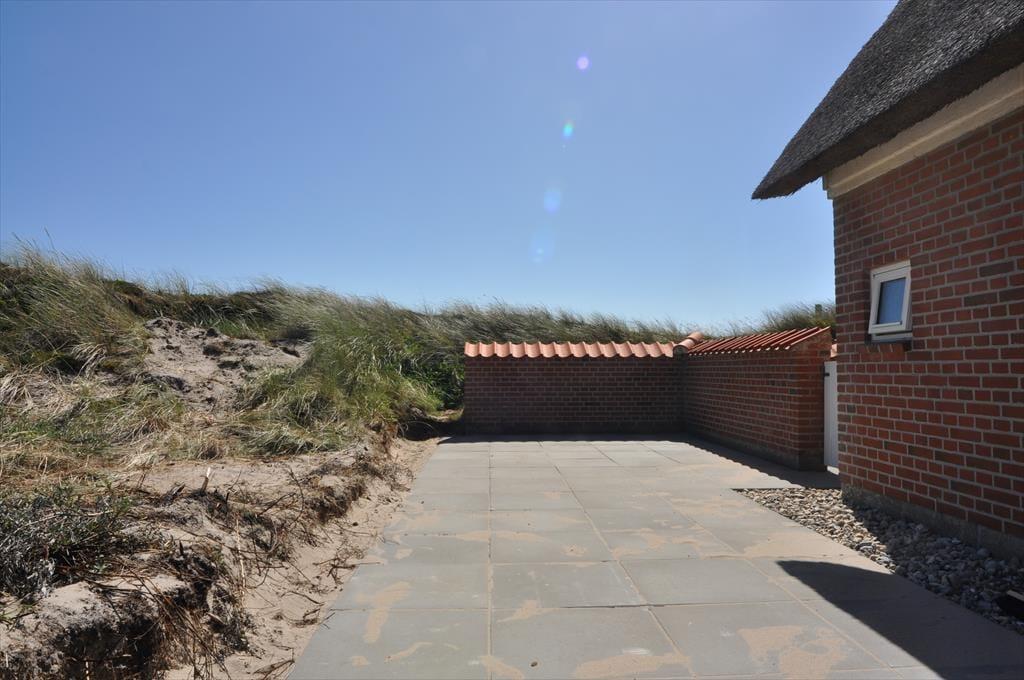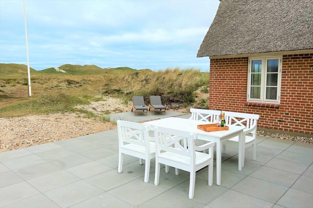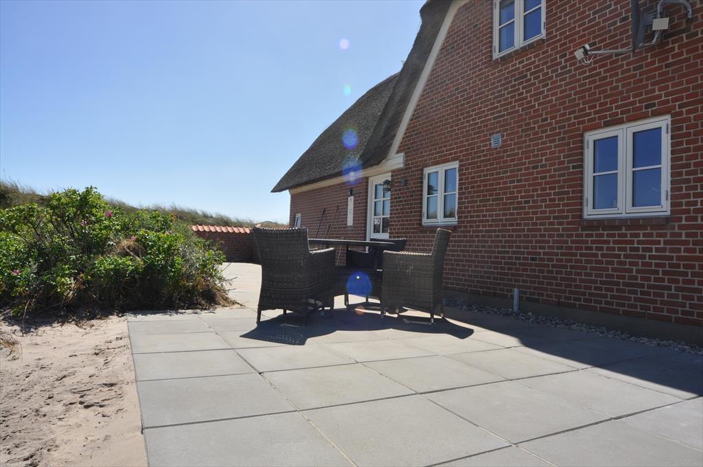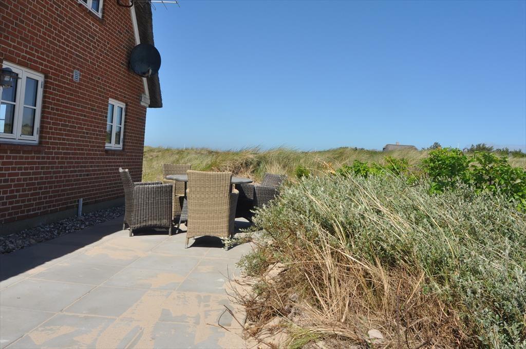Das Haus liegt in erster Reihe zu den Dünen auf einem 41.000 m² großen friedlichen Grundstück. Vom Haus aus führt ein eigener Pfad direkt zum Meer. Vom höchsten Punkt des Grundstückes aus können Sie die freie Aussicht über die Nordsee genießen. Das Haus ist von guten Terrassen umgeben, von denen die südöstliche morgens bis mittags und die südwestliche nachmittags bis abends von der Sonne beschienen wird. Die Terrassen verfügen über gute Gartenmöbel wie auch Gartenliegen. Zum Haus gehört ein Parkplatz zum Anstellen Ihres Fahrzeuges. Außerdem steht Ihnen ein elektrischer Grill zur Verfügung. Aufgrund der durch das Strohdach und die großen Naturflächen bedingten Brandgefahr gibt es leider keinen Kohlegrill.