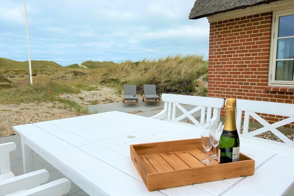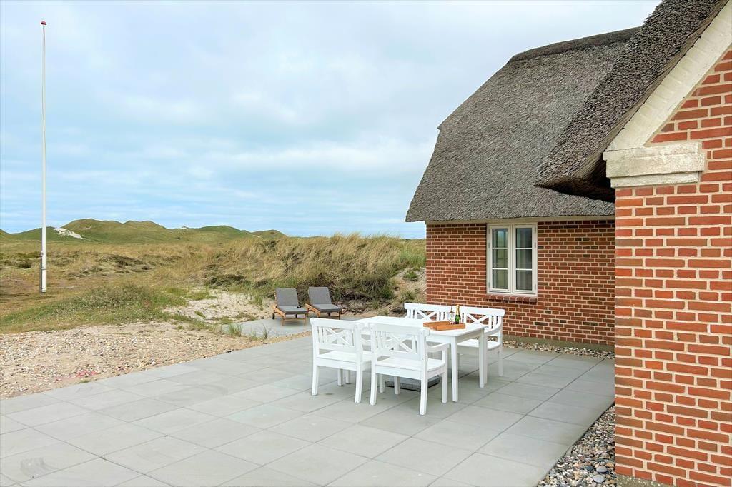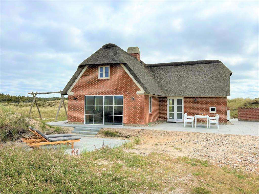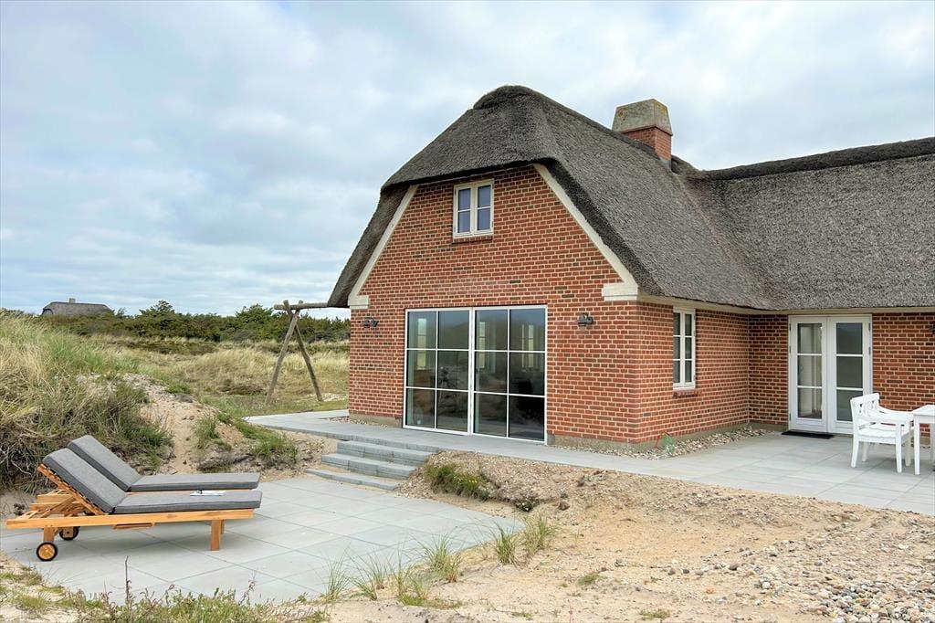 Das Haus liegt in erster Reihe zu den Dünen auf einem 41.000 m² großen friedlichen Grundstück. Vom Haus aus führt ein eigener Pfad direkt zum Meer. Vom höchsten Punkt des Grundstückes aus können Sie die freie Aussicht über die Nordsee genießen. Das Haus ist von guten Terrassen umgeben, von denen die südöstliche morgens bis mittags und die südwestliche nachmittags bis abends von der Sonne beschienen wird. Die Terrassen verfügen über gute Gartenmöbel wie auch Gartenliegen. Zum Haus gehört ein Parkplatz zum Anstellen Ihres Fahrzeuges. Außerdem steht Ihnen ein elektrischer Grill zur Verfügung. Aufgrund der durch das Strohdach und die großen Naturflächen bedingten Brandgefahr gibt es leider keinen Kohlegrill.