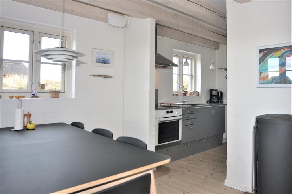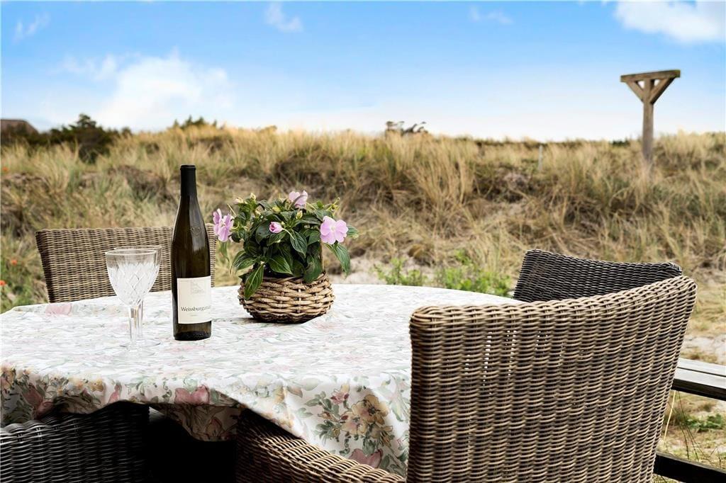 Fantastischer Qualitätsbau in einzigartiger Lage mit schöner Aussicht auf die Dünen.Das Haus ist in einem hervorragenden Zustand.Die besonders charmante und geschmackvolle Einrichtung zeichnet sich durch viele interessante architektonische Details und schöne und komfortable Möbel aus.Überall im Haus finden sich offen liegendes Balkenwerk und weiß verputzte Wände. Zudem sind in allen Zimmern Holzfußböden verlegt, außer im Badezimmer und im Eingangsbereich, welche gefliest sind und über eine Fußbodenheizung verfügen. Die Schlafzimmer sind alle mit hochwertigen Betten eingerichtet. Für die kleinsten Gäste findet sich ein Spieltisch mit dazugehörigen Kinderstühlen.