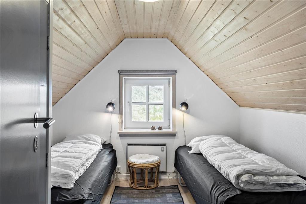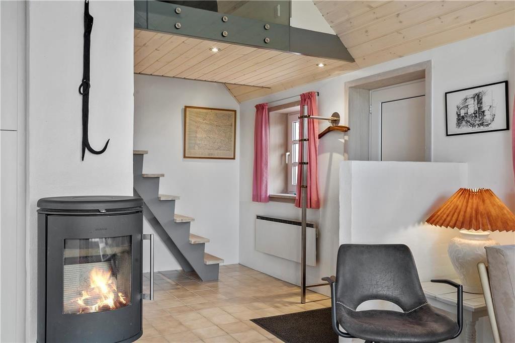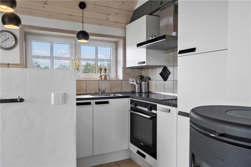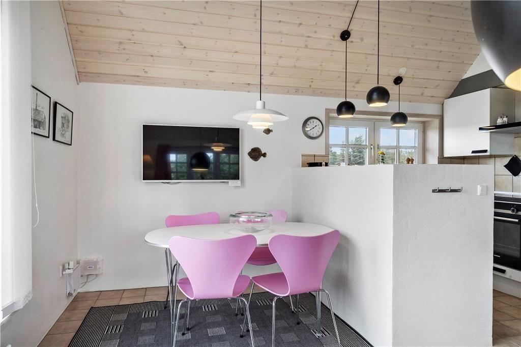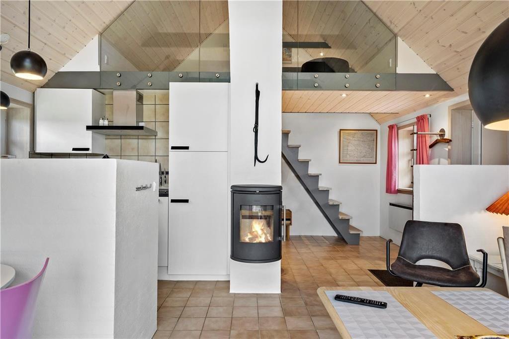 Et skønt og ny-renoveret feriehus i 2 etager med lys og venlig indretning. Feriehuset har en kombineret opholdsstue og spiseafdeling med åben forbindelse til et flot, nyt køkken. Fra opholdsstue og spiseafdeling har man en fantastisk udsigt til det skønne vestjyske klitlandskab. Stueetagen er ligeledes indrettet med et soverum med dobbeltseng og pænt badeværelse med bruser og en mini-vaskemaskine. Et værelse med skabsplads, fryser og mikroovn og med god plads til bagagen. På 1. sal er der en repoe, hvorfra man kan kigge ned i stuen og køkkenet. Et soverum med 2 enkeltsenge