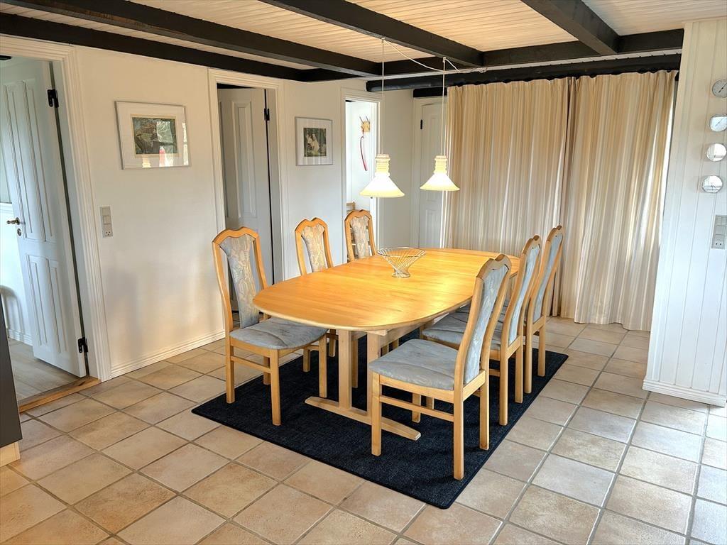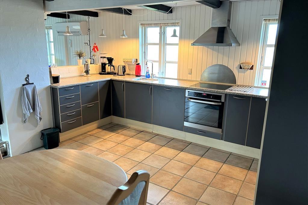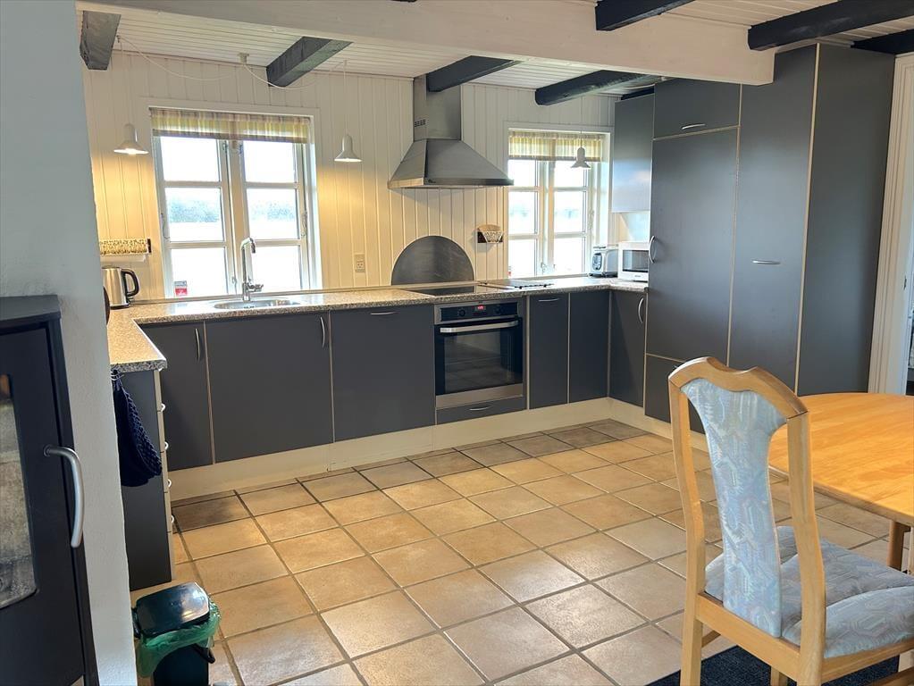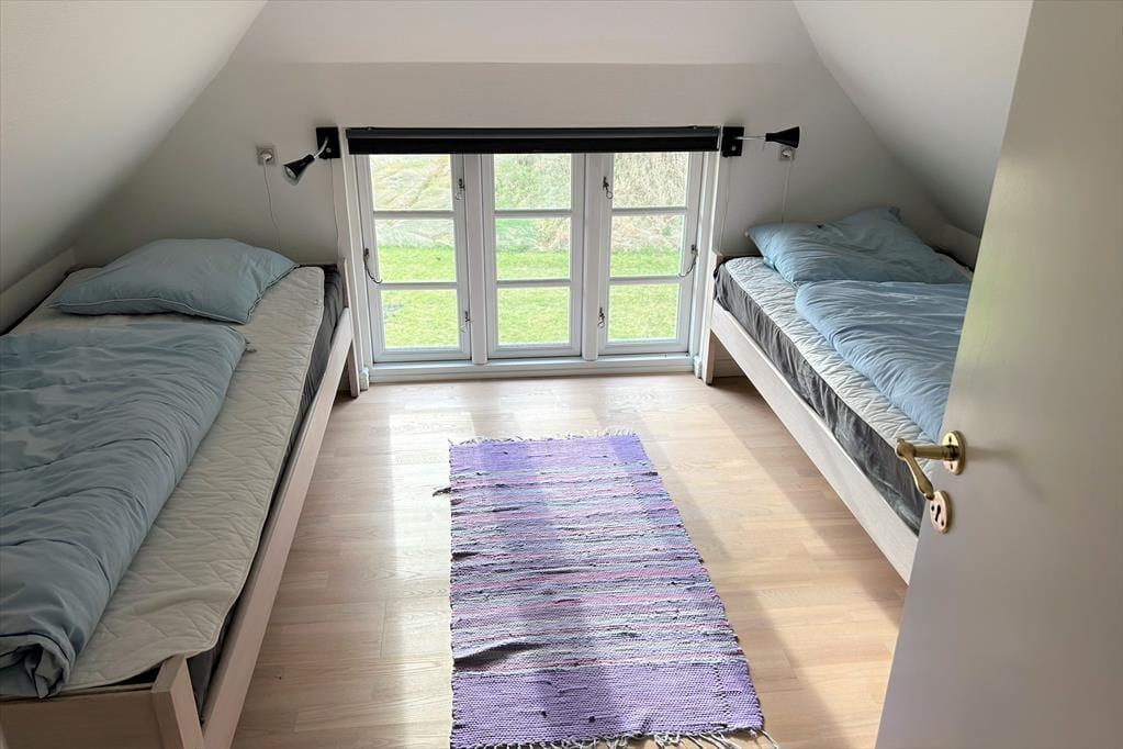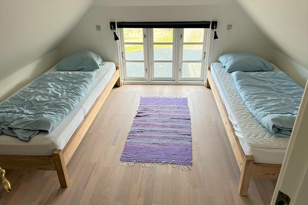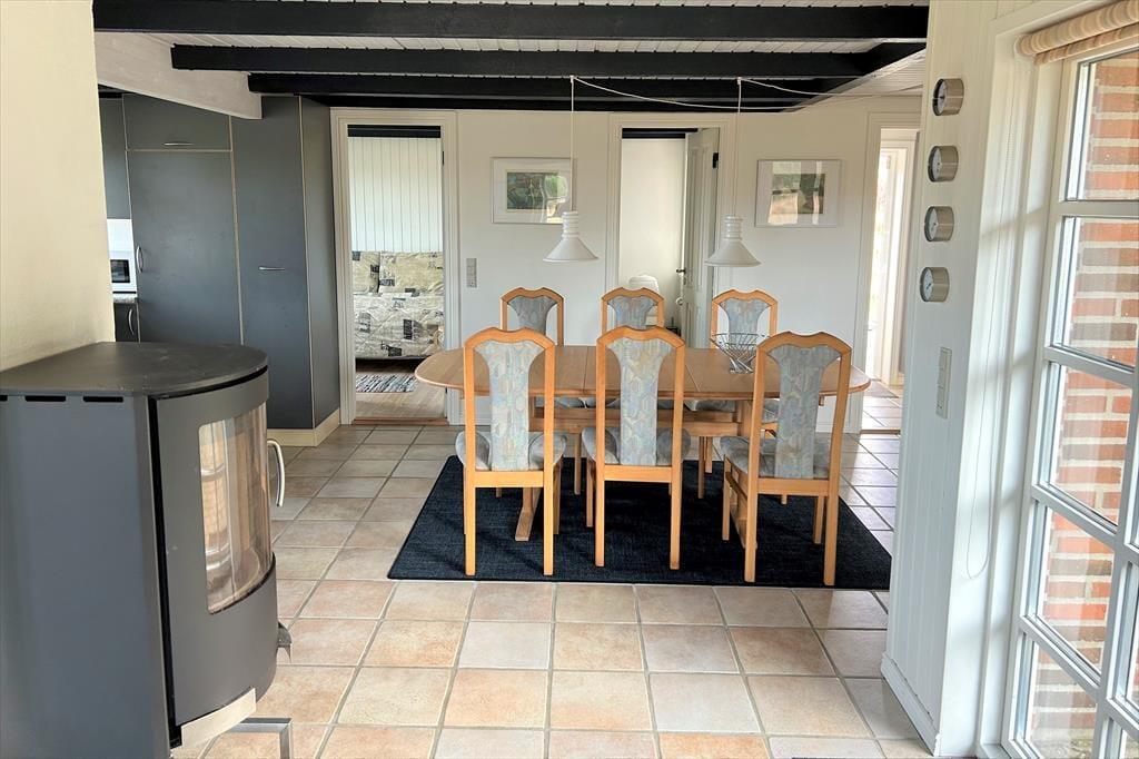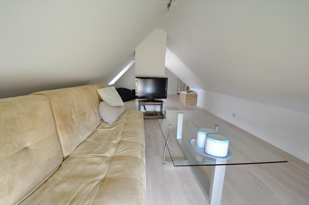 Ein gemütlich eingerichtetes Ferienhaus mit sehr schönem Wohn-Küchen-Ambiente. Die Küche des Hauses ist bestens ausgestattet und liegt in offener Verbindung mit dem Wohn- und Essbereich, in der sich auch der Kaminofen befindet. Der ideale Ort, um Zeit gemeinsam mit der Familie zu verbringen, denn hier ist reichlich Platz für alle vorhanden. Das Badezimmer verfügt über eine Dusche. In dem einen Schlafzimmer ist viel Schrankplatz vorhanden, während sich im anderen ein Einzelbett sowie ein kleiner Gefrierschrank befinden. Im zweiten Stock befinden sich zwei Schlafzimmer und ein Aufenthaltsraum mit Dachschrägen, gut geeignet zum Spielen für die Kinder. Haustiergebühr 28 Euro.