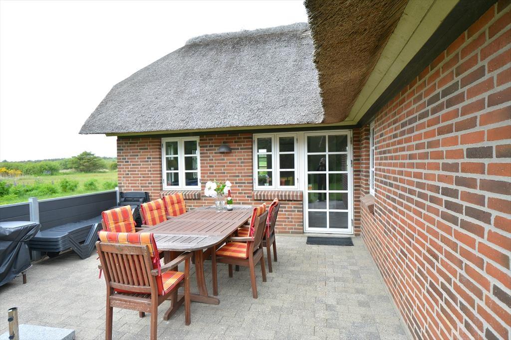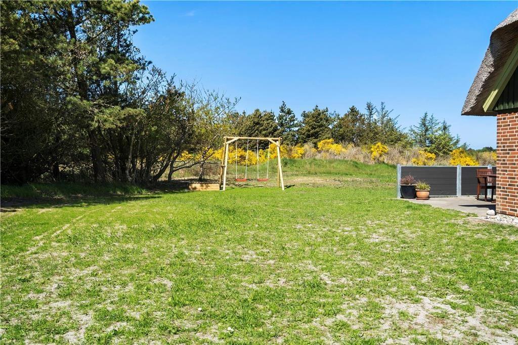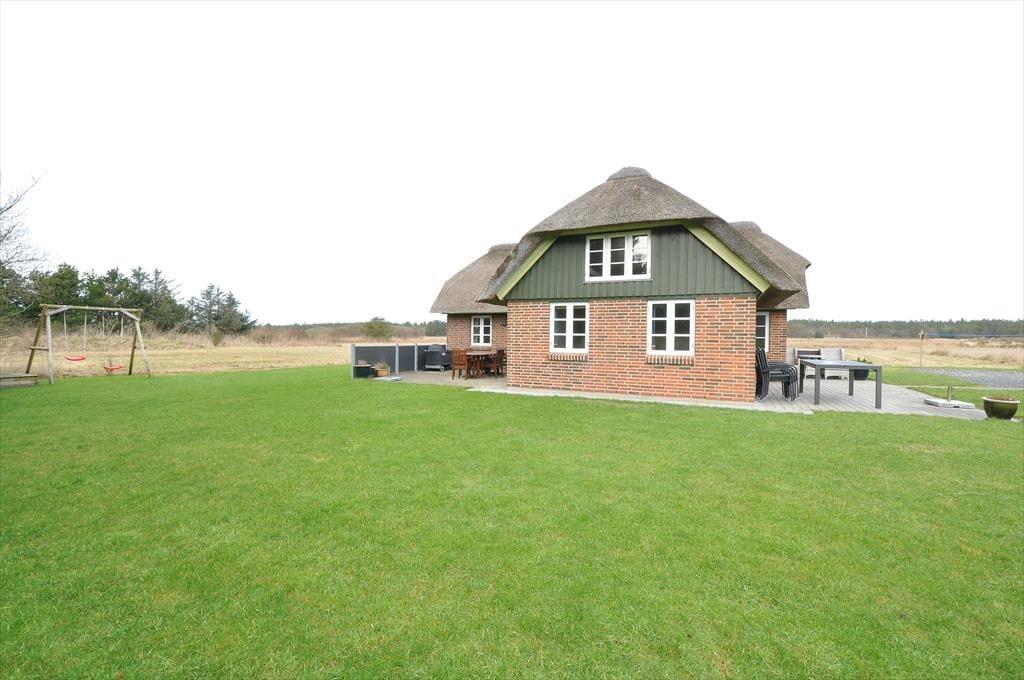Das Haus liegt auf einem gut 5.000 m² großen Naturgrundstück mit Ausblick über Wiesen und Felder. Das Haus hat zwei Terrassen, die eine nach Süden, die andere nach Osten ausgerichtet, so dass Sie immer geschützte Bereiche finden. Auf beiden Terrassen stehen gute Gartenmöbel zur Verfügung. Die Hälfte des Grundstücks ist durch dichte Bepflanzung windgeschützt. Für die Kinder ist eine Schaukel aufgestellt und auf dem großen Areal ist reichlich Platz für Spiel und Spaß vorhanden.