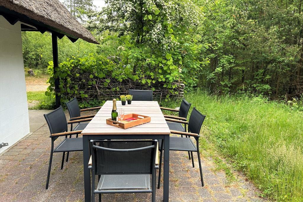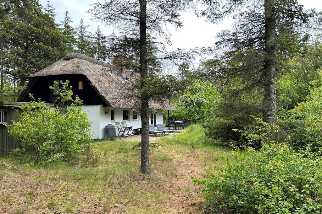 Das gemütliche Reetdachhaus ruht auf einem gut 6.000 m² großen, hügeligen Naturgrundstück, das von hohen Nadelbäumen umrahmt ist. Auf dem Grundstück werden Sie mit einem Ausblick auf die prachtvolle Dünenlandschaft verwöhnt. Von einer Bank am westlichen Ende des Grundstücks genießen Sie einen freien Blick über die Dünen und können mit ein wenig Glück Rotwild und spielende Füchse beobachten. An das Haus schmiegt dich zudem eine wunderbar sonnenverwöhnte Terrasse, auf der Sie sich in aller Ruhe erholen und entspannen werden.
