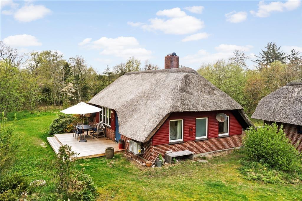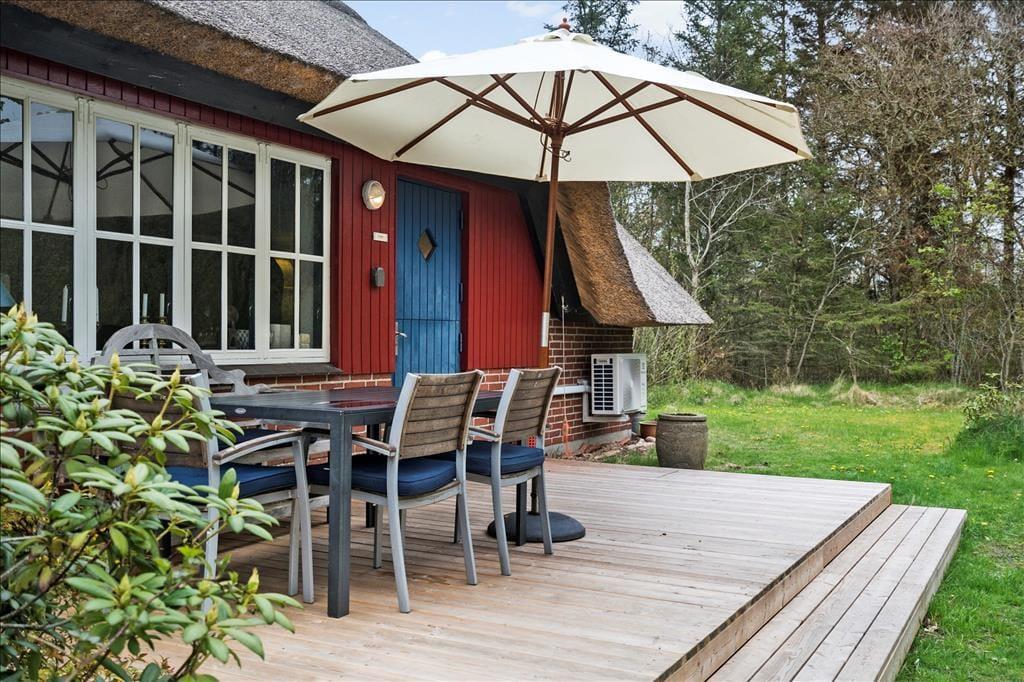Gemütliches Reetdachferienhaus in Ulfborg mit Kamin, Garten und Nähe zum Strand für erholsame Urlaubstage.