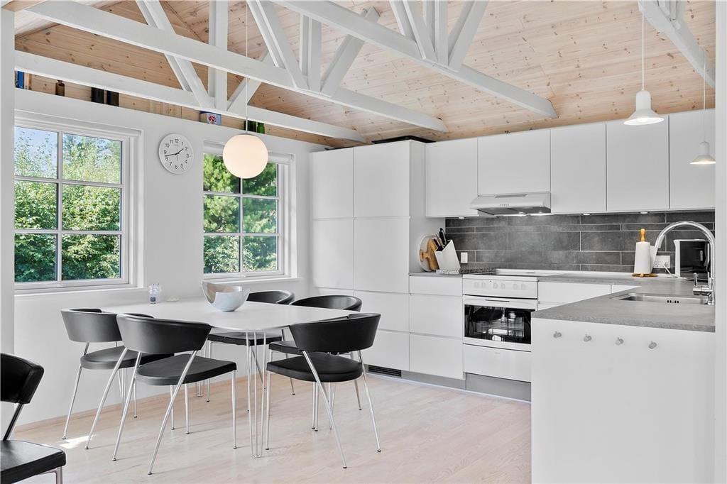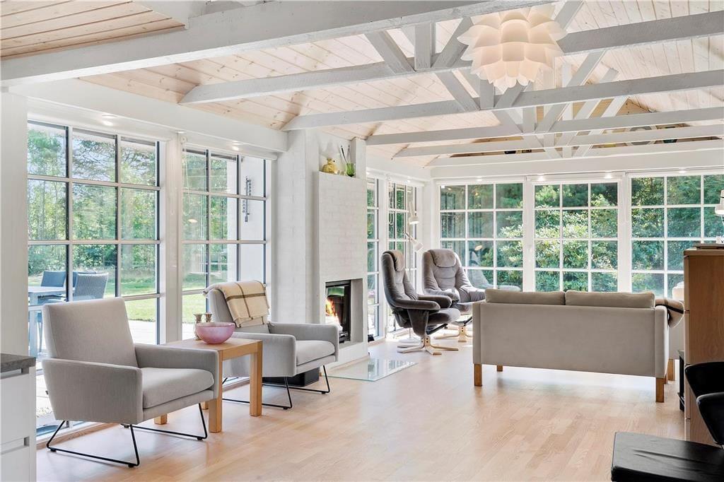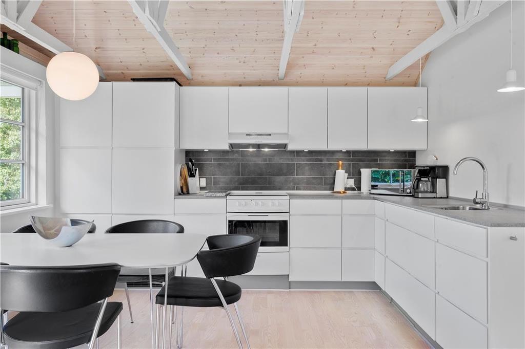 Prachtvoll renoviertes Ferienhaus für sechs Personen. Freuen Sie sich auf einen attraktiven Wohnraum mit hohen Decken und einem fantastischen Lichteinfall, der aufgrund der bodentiefen Fenster und Türen den gesamten Raum durchströmt. Wunderbar abgerundet wird das Ambiente durch die geschmackvolle Möblierung und den Kaminofen, der nicht nur für behagliche Wärme, sondern auch für ein Maximum an Gemütlichkeit und Stimmung sorgt. In Verlängerung des Wohnraumes lockt die helle, gut ausgestattete Küche samt Essplatz. Allabendlich begeben sich sich in drei hellen Schlafräumen, die teilweise ebenfalls mit hohen Decken begeistern, zur Ruhe. Das schöne, helle Badezimmer verfügt über eine Duschnische.