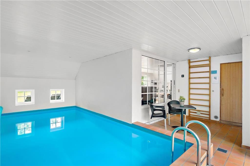 Wunderbar helles und schön eingerichtetes Pool-Haus für sechs Personen. Das Haus ist ausgestattet mit einer Kombination aus Küche, Essbereich und Wohnraum. Die Küche ist hell und freundlich, nur durch eine halbhohe Trennwand zum Essbereich hin abgeteilt und mit einer Spülmaschine und einer Mikrowelle ausgestattet. Der natürliche Treffpunkt des Hauses ist die gemütliche Sofaecke mit einem Fernseher und einem behaglich knisternden Kaminofen, von wo aus Sie direkten Zugang zum Pool genießen. Dieser misst 3 x 6 Meter, ist 1,30 Meter tief und mit einer Schwimmhilfe ausgestattet. Im Anschluss an den Poolraum befinden sich die Sauna und das Bad mit Dusche. Das Haus verfügt über drei helle Schlafzimmer sowie ein helles und ansprechendes Badezimmer.