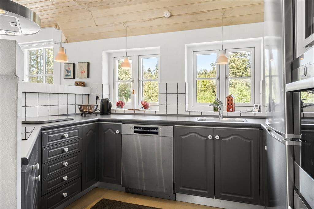 Sie wohnen angenehm zentral, auf einen herrlichen, geschlossenen Naturgrundstück, mitten in der prachtvollen Natur von Vester Husby. Ein schöner Pfad führt Sie durch die wunderschöne Landschaft direkt an die faszinierende Nordsee und den attraktiven Badestrand. Bereits nach 900 Metern spüren Sie den weißen Sand des Strandes unter Ihren Füßen. Binnen kurzer Zeit erreichen Sie auch die nur 350 Meter entfernt gelegene Einkaufsmöglichkeit und ein Restaurant. Die Umgebung eignet sich hervorragend für schöne Radtouren. Zahlreiche gute Radwege durchziehen das flache Terrain. In der Umgebung locken zudem zahlreiche schöne Naturerlebnisse, beispielsweise in Form des Waldgebietes Husby Klitplantage, des Vedersø Præstegård (Dichter und Priester Kaj Munk), des Stadil Fjords, des Nissum Fjords und des Ringkøbing Fjords, wobei sich letztgenannte hervorragend zum Windsurfen und Kiten anbieten. Frischen Fisch können Sie hervorragend im Fischereihafenort Thorsminde (15 km) kaufen. Wenn Ihnen der Sinn nach ein wenig städtischem Flair und einem Shoppingausflug stehen sollte, besuchen Sie einfach Søndervig (15 km), Ringkøbing (20 km) oder Holstebro (30 km).