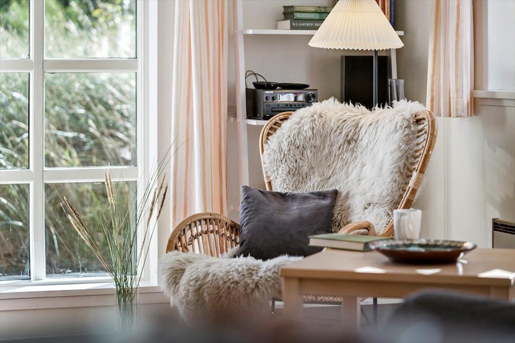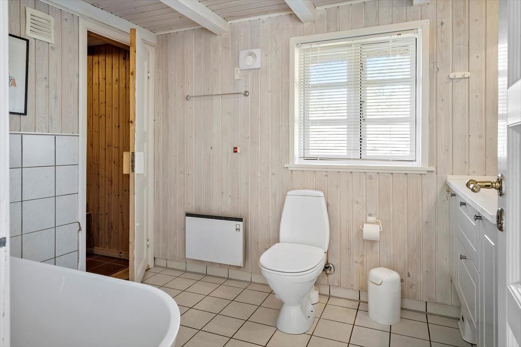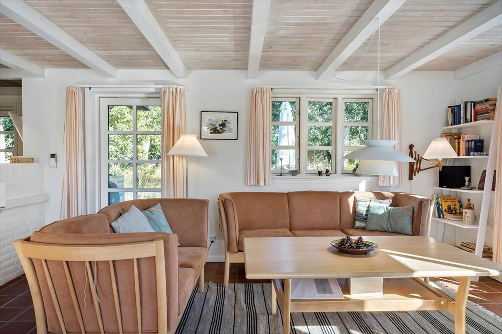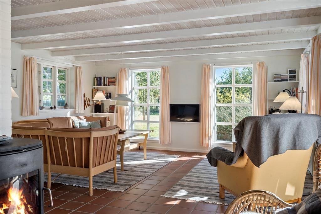Ein sehr schönes und gut gepflegtes 150 m² großes Ferienhaus in Vester Husby. Das Wohnzimmer ist geschmackvoll und gemütlich eingerichtet, mit schönen Möbeln und einem Kaminofen, der sowohl im Sommer als auch im Winter für Gemütlichkeit und behagliche Wärme sorgen kann. Eine gut ausgestattete Küche mit Geschirrspüler und Mikrowelle sorgt für problemlose Essenszubereitung. Das große Badezimmer ist mit einer Badewanne, Sauna, Toilette und einem Waschbecken ausgestattet, ein zusätzliches Badezimmer mit einer Dusche, Waschmaschine und einem Trockner. Das Ferienhaus hat insgesamt vier Schlafzimmer, wovon sich drei im ersten Stock befinden. Alle Schlafzimmer haben Holzböden, die übrigen Böden sind gefliest.