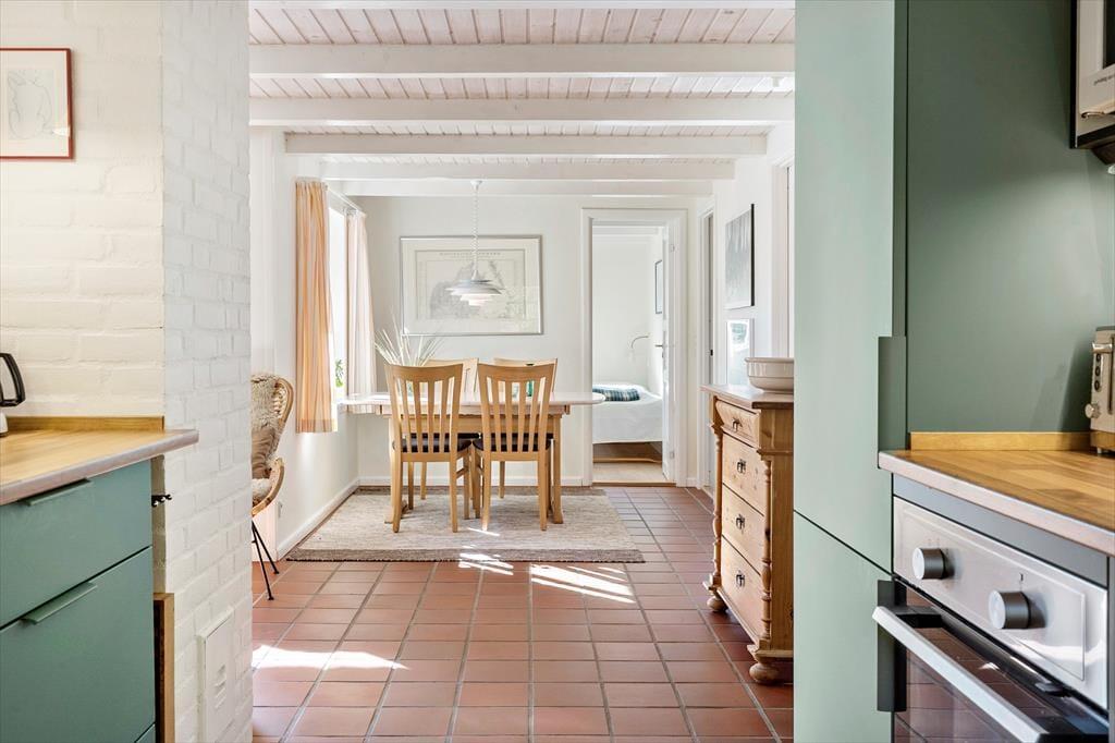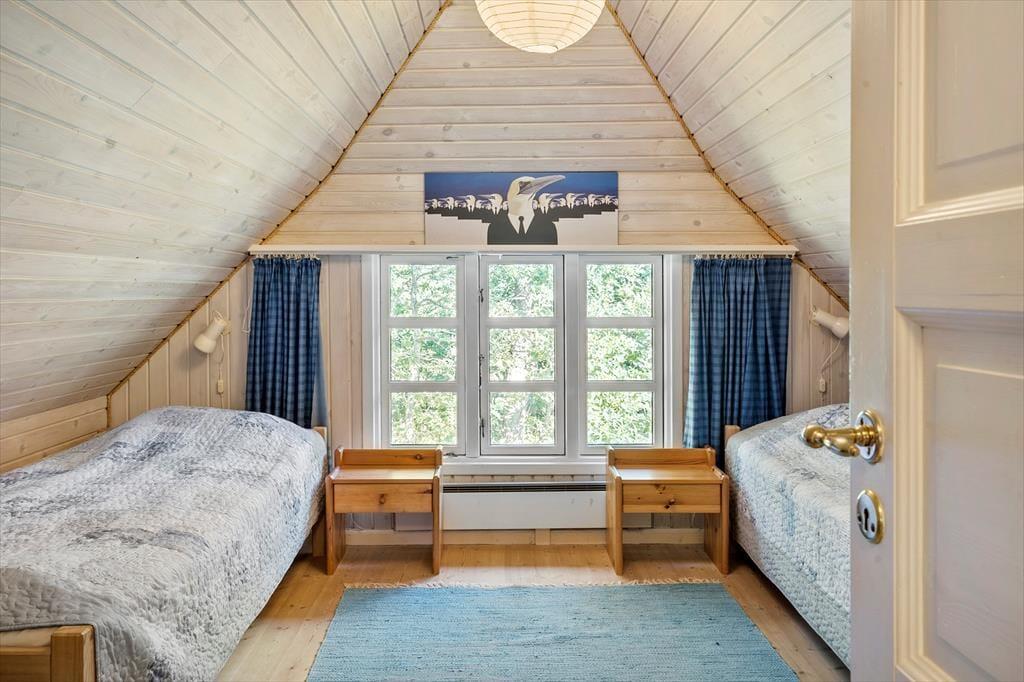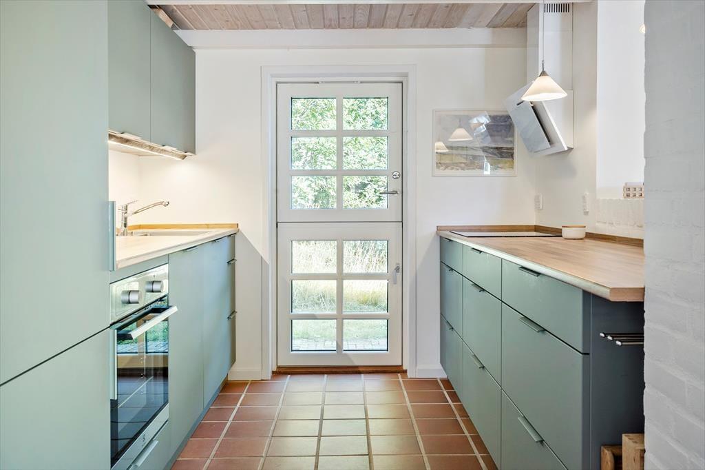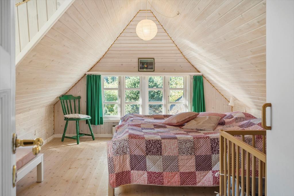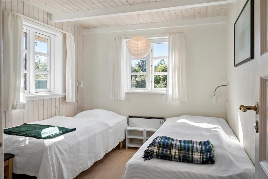 Ein sehr schönes und gut gepflegtes 150 m² großes Ferienhaus in Vester Husby. Das Wohnzimmer ist geschmackvoll und gemütlich eingerichtet, mit schönen Möbeln und einem Kaminofen, der sowohl im Sommer als auch im Winter für Gemütlichkeit und behagliche Wärme sorgen kann. Eine gut ausgestattete Küche mit Geschirrspüler und Mikrowelle sorgt für problemlose Essenszubereitung. Das große Badezimmer ist mit einer Badewanne, Sauna, Toilette und einem Waschbecken ausgestattet, ein zusätzliches Badezimmer mit einer Dusche, Waschmaschine und einem Trockner. Das Ferienhaus hat insgesamt vier Schlafzimmer, wovon sich drei im ersten Stock befinden. Alle Schlafzimmer haben Holzböden, die übrigen Böden sind gefliest.