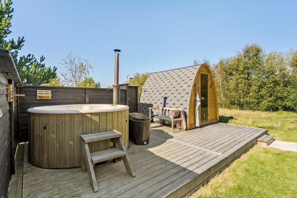 Das Ferienhaus befindet sich auf einem Naturgrundstück auf der Husby Strandenge - einem neueren Ferienhausgebiet auf der anderen Seite der Landstraße, gegenüber dem Ferienhausgebiet Vester Husby. Die herrliche Natur ringsum erkunden Sie zu Fuß, per Fahrrad oder per Auto. Nach rund zwei Kilometern erreichen Sie die Nordsee und das Waldgebiet Husby Klitplantage, in dem Sie unter anderem auf einen Hundewald, einen Badesee und gute Wander- und Fahrradrouten treffen. Zwischen der Husby Klitplantage und Vester Husby befindet sich ein Waldspielplatz. Ihre täglichen Einkäufe erledigen Sie in den umliegenden Supermärkten, die innerhalb eines Radius von 10 Kilometern liegen. Die meisten dieser Supermärkte sind ganzjährig geöffnet.