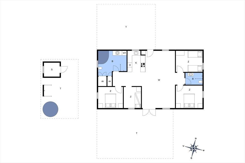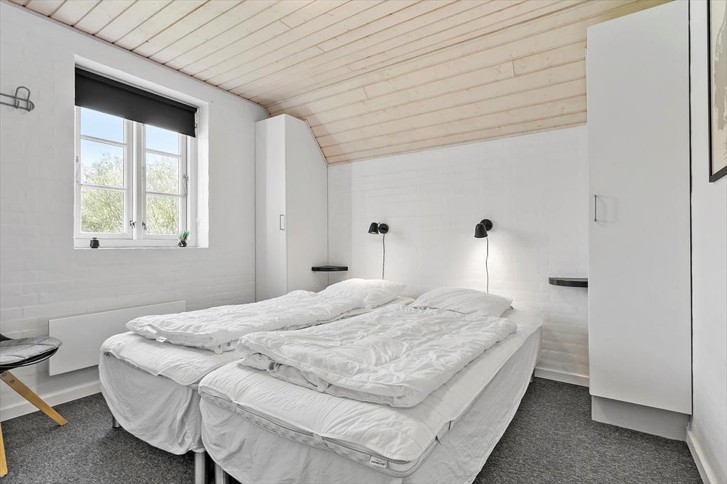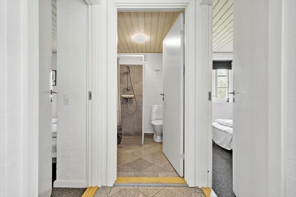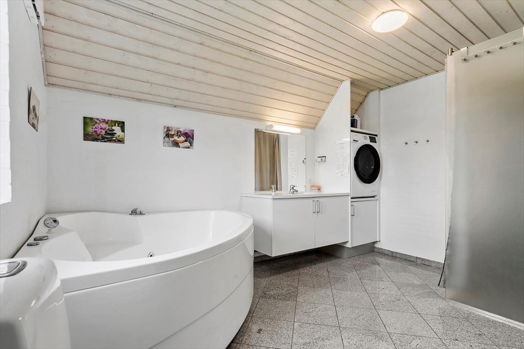 Sämtliche Aufenthaltsbereiche sind mit einem Fliesenboden versehen. Die Schlafräume sind mit Teppichboden ausgelegt und bieten ebenfalls Stauraum. Insgesamt stehen Ihnen vier helle Schlafräume mit Schrankfläche zur Verfügung. Diese verteilen sich auf zwei Abteilungen. Zu jeder Schlafabteilung gehört ein Badezimmer. Eines der Bäder besticht mit einer Waschmaschine, einem Whirlpool und Dusche. Die Seite des Eigentümers zu dem Haus: www.casa-knors.dk
