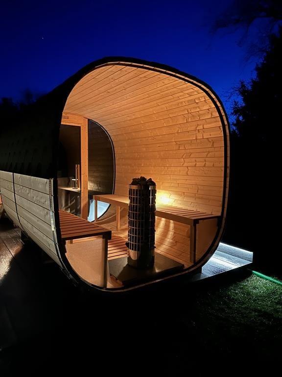 Den Sonnenuntergang können Sie vom Outdoor-Wellnessbereich aus beobachten. Hier können Sie die letzten Stunden der Sonne über den Dünen genießen und den Übergang zu einem klaren Sternenhimmel verfolgen – alles aus dem Komfort Ihres Spas und/oder Ihrer Sauna.