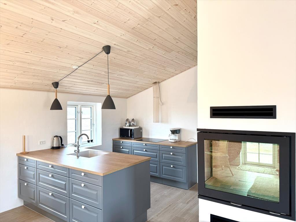 Im Inneren erwartet Sie ein großzügiger, offener Küchen-Wohn- und Essbereich, in dem die ganze Familie beim Kochen, Spielen und Entspannen zusammenkommen kann. Von hier aus gibt es zwei Ausgänge zu den Terrassen des Hauses, sodass Innen- und Außenleben ganz natürlich ineinander übergehen und Sie der Sonne im Laufe des Tages folgen können. Im Wohnbereich sorgt der Kaminofen an kühleren Tagen für zusätzliche Wärme und Gemütlichkeit. Als besonderes Highlight können Sie sich nach einem langen Tag am Meer im hauseigenen Indoor-Whirlpool entspannen und die Ruhe des Urlaubs genießen.