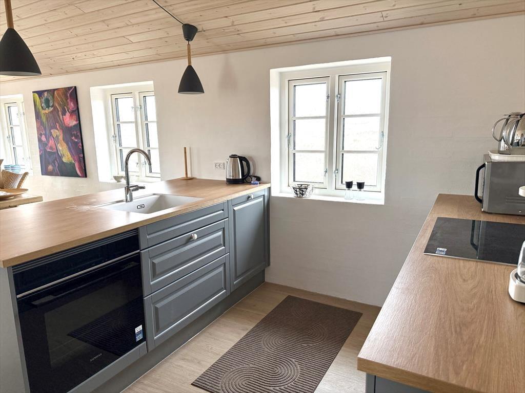 Da die Nordsee nur wenige hundert Meter entfernt liegt, bieten sich Strandtage, Badeausflüge und lange Spaziergänge entlang der Wasserkante geradezu an. Zudem haben Sie einen einfachen Zugang zur Husby Klitplantage, wo markierte Rad- und Wanderwege Sie durch eine beeindruckende Landschaft aus Wald, Heide und Dünen führen – perfekt für aktive Ausflüge ebenso wie für ruhige Naturerlebnisse.
