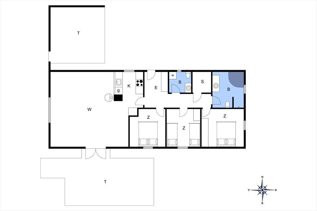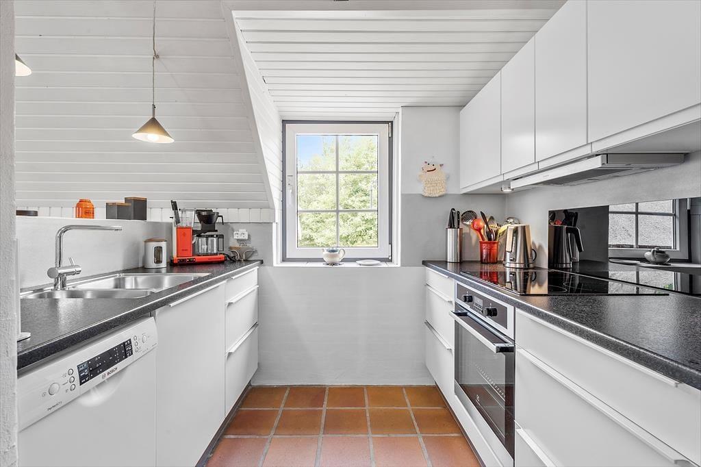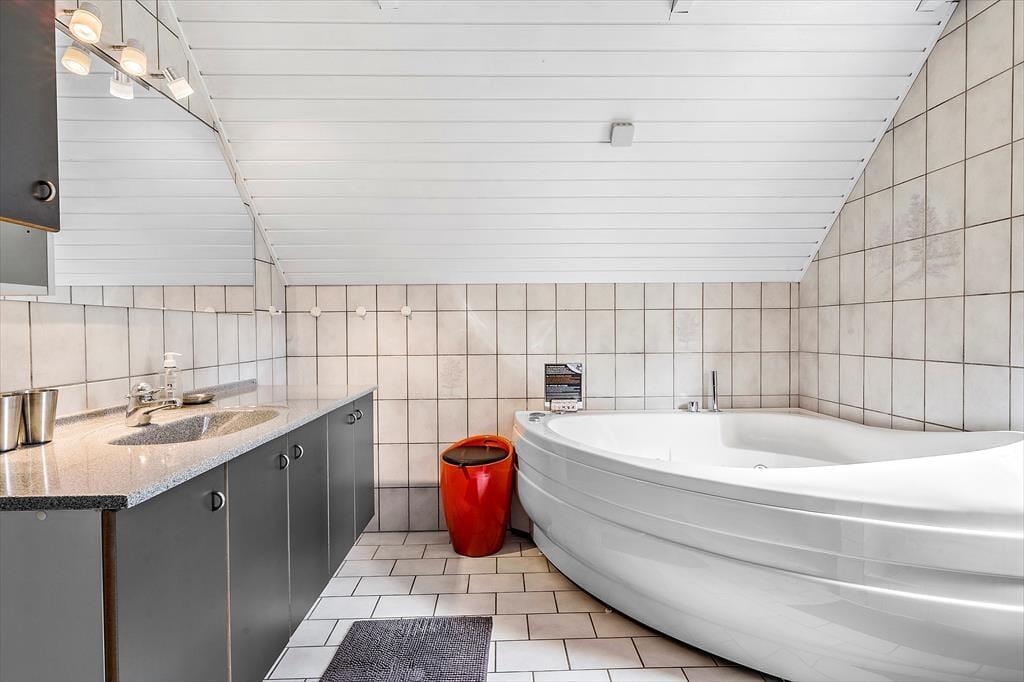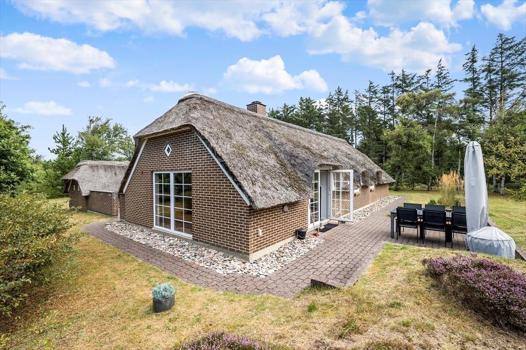 Ein schönes und gepflegtes Reetdachhaus ausgestattet mit einem gemütlichen Wohnzimmer mit Essbereich. Die gut ausgestattete Küche erschließt sich zum Wohn-und Essbereich. Hier können die Mahlzeiten mit der ganzen Familie zubereitet werden. Das Badezimmer ist sowohl mit einem Whirlpool als auch einer Dusche ausgestattet. Direkt neben dem Badezimmer befindet sich die Sauna. Zudem hat das Haus ein Gäste-WC. Helle holzverkleidete Decken und Wände finden sich im ganzen Haus. In den drei Schlafräumen ist Holzfußboden verlegt. Fliesen finden sich in der Küche, den Bädern und dem großen Aufenthaltsraum.