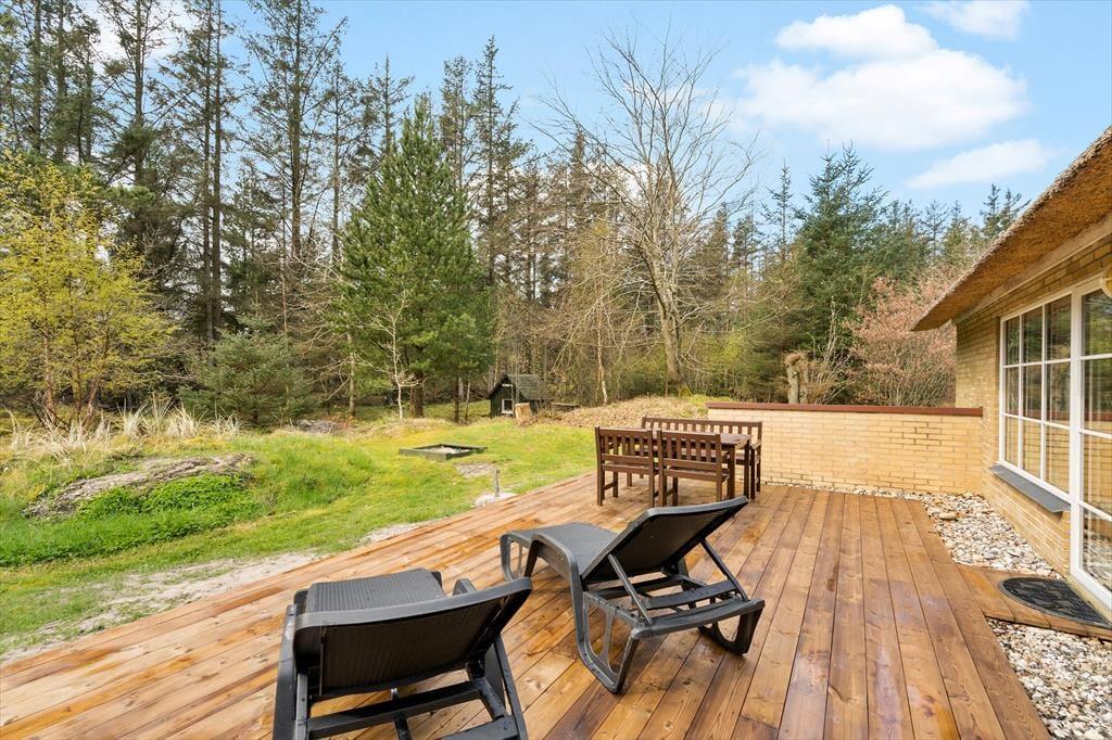 Dieses im friedvollen Ferienhausgebiet Vester Husby gelegene Ferienhaus trennen nur 1.300 Meter vom Nordseestrand. Die Gegend erfreut sich insbesondere bei Paaren und Familien, die die Natur lieben, großer Beliebtheit. Zahlreiche schöne Wege und Pfade laden zu Joggingrunden, Fahrradtouren, Wanderungen und Spaziergängen ein. Für Abwechslung sorgen die gut erreichbaren Handelsstädte Ringkøbing und Holstebro, in denen Sie gute Restaurants und interessante Geschäfte erwarten. Ihre täglichen Einkäufe erledigen Sie in den Supermärkten der umliegenden Ortschaften. Innerhalb eines gut überschaubaren Radius erwarten Sie Badeländer, Museen, Kunsthandwerkerwerkstätten und vieles mehr.