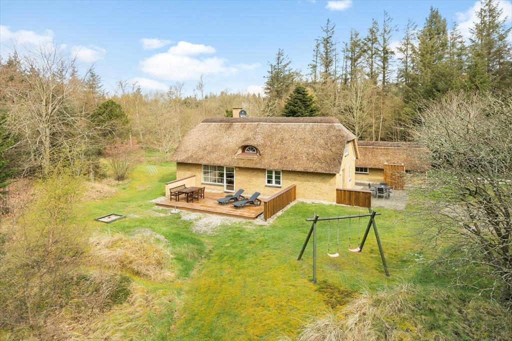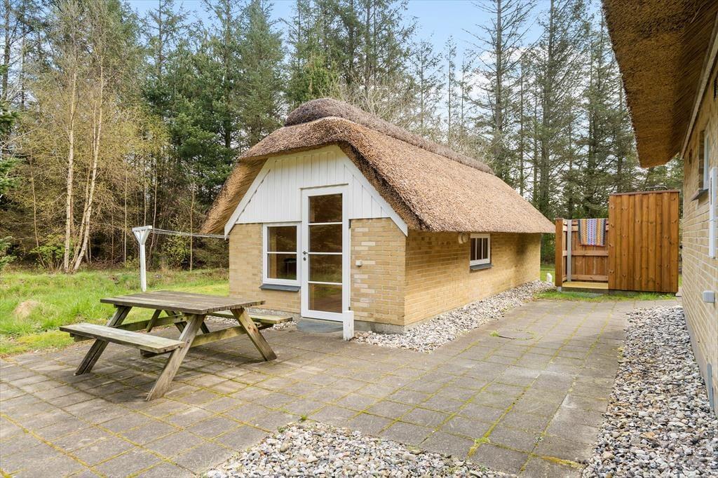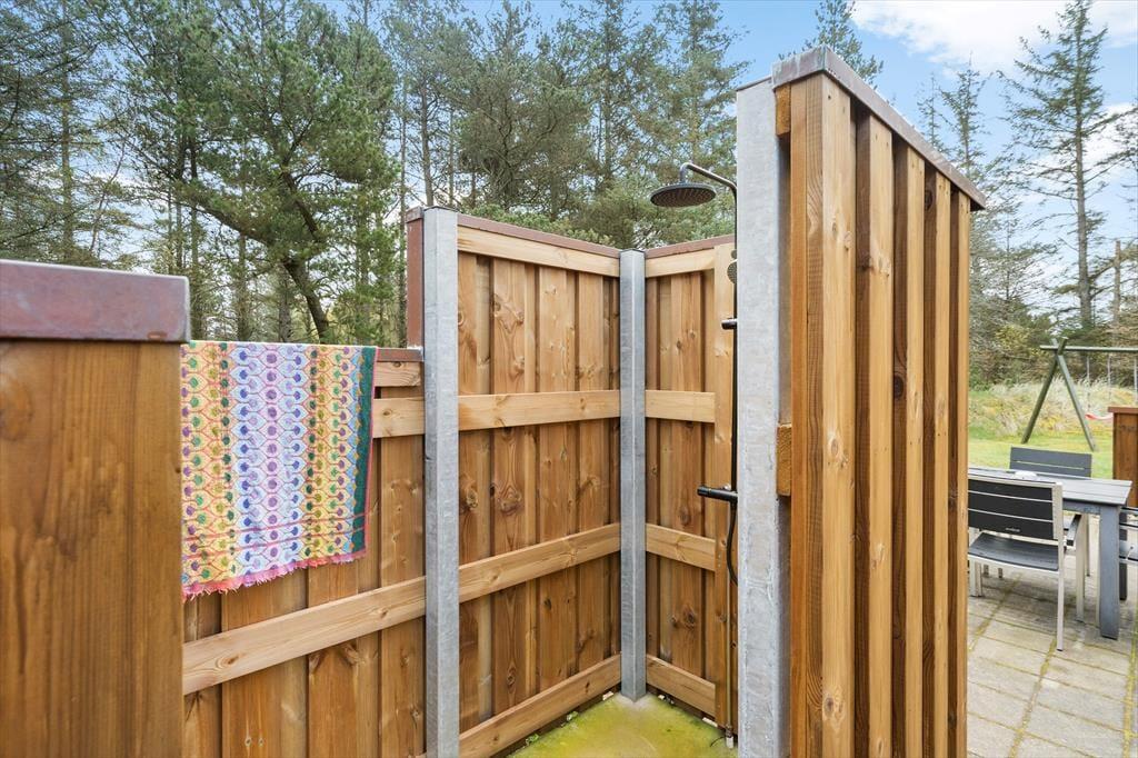 Das sehr schöne Reetdachferienhaus liegt in einem ruhigen Gebiet, auf einem großen, hügeligen Naturgrundstück. Das Grundstück ist angenehm ungestört, bietet viel Platz zum Spielen und besticht mit gutem Windschutz. Die Jüngsten dürfen sich auf eine Schaukel, eine Sandkiste und ein kleines Fußballtor freuen. Die Terrasse ist mit guten Gartenmöbeln und einem Grill ausgestattet und lädt zu gemütlichen Essen unter freiem Himmel ein. Die Außendusche, die sowohl heißes als auch kaltes Wasser hat, kann vor oder nach dem Saunagang verwendet werden, der sich im Schuppen befindet. Die Außendusche kann nur im Zeitraum von 1. Mai bis 1. Oktober genutzt werden.