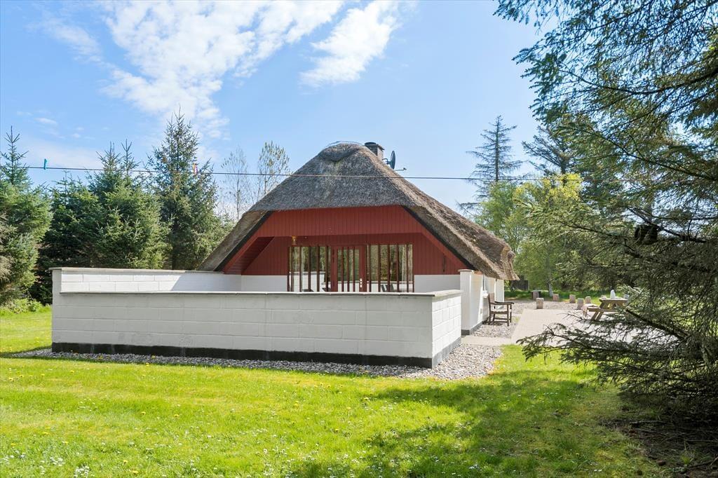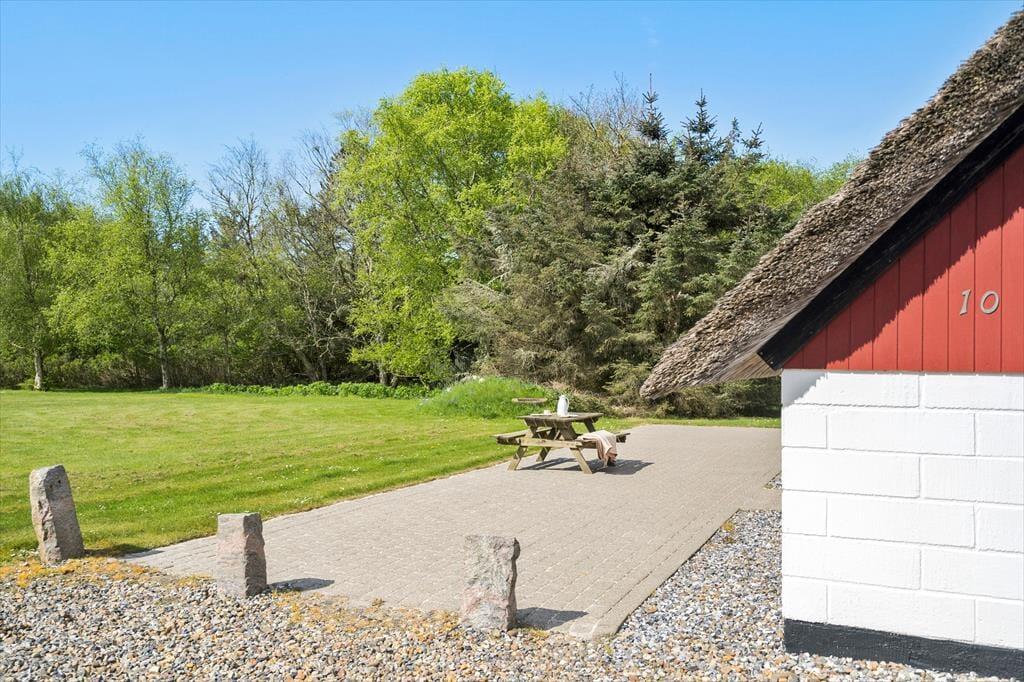 Das schöne, gepflegte Reetdachhaus liegt auf einem großen, gepflegten Grundstück am Ende eines Stichwegs in Vester Husby. Auf dem Grundstück genießen Sie guten Windschutz. An das Haus schließen zwei schöne Terrassen mit Gartenmöbeln. Die Terrassen, von denen eine über eine Windschutzmauer verfügt, weisen gen Süden und gen Westen. Ihren Pkw können Sie direkt am Haus abstellen.